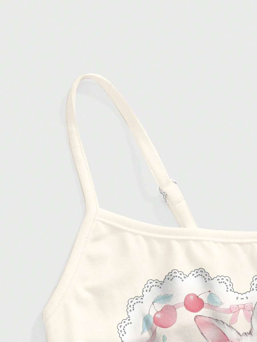 Canottiera da donna carina con pizzo, cuori kawaii, coniglietti e ciliegie