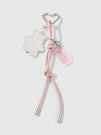 Kawaii 1 pezzo Piccolo pettine rosa decorato e con disegno di orso, specchio in vetro, cordino in pelle rosa, portachiavi a forma di cuore fai-da-te, adatto per ragazze e donne come accessorio quotidiano o regalo