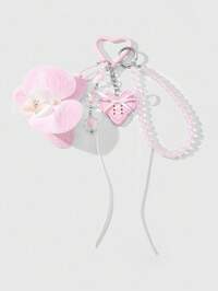Kawaii 1 pezzo Orchidea Phalaenopsis realistica carina secondo lo stile INS, decorata con perline luccicanti e fiocco in acrilico, ideale come charm per telefono, portachiavi, pendente per borsa, accessorio da indossare quotidianamente per le donne, regalo