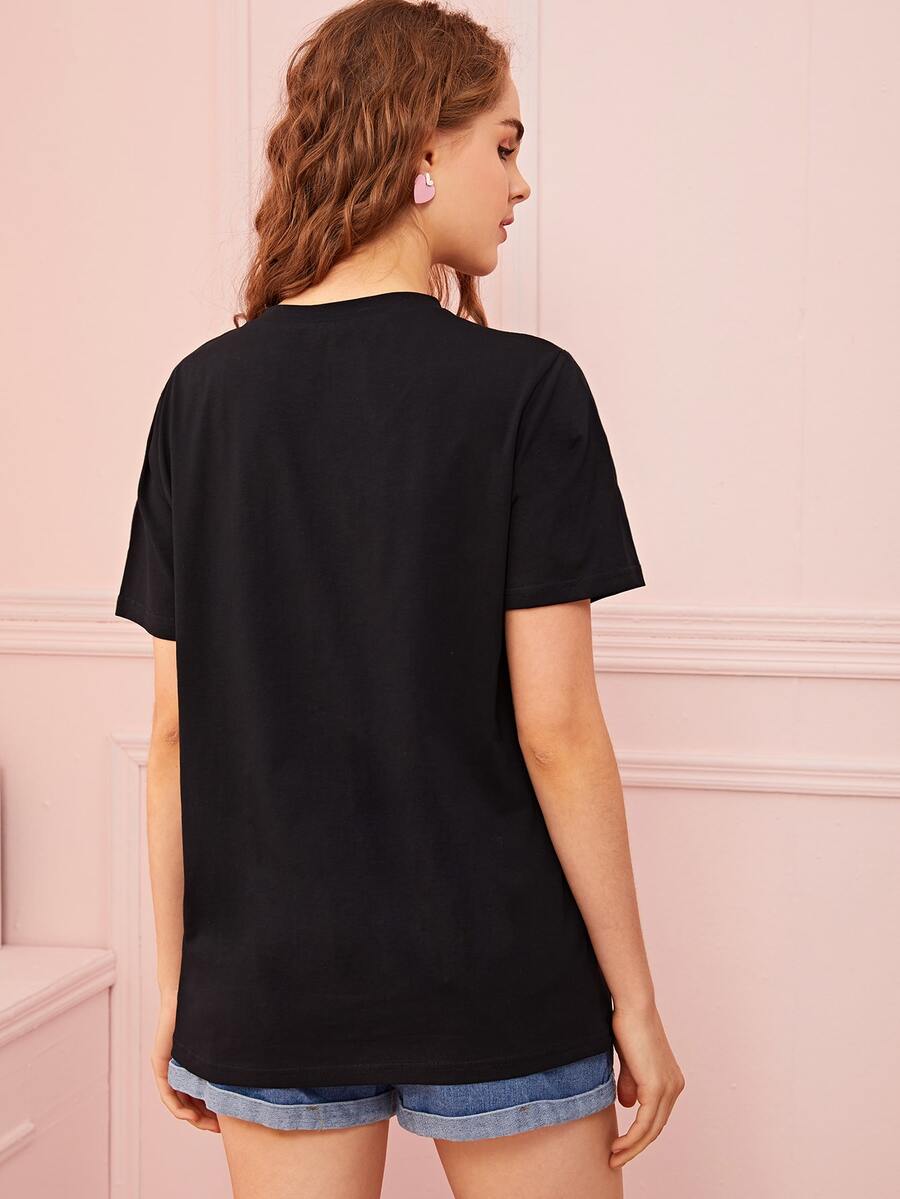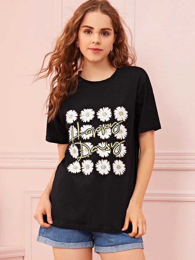 Maglietta nera con stampa margherita