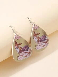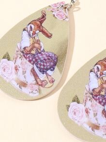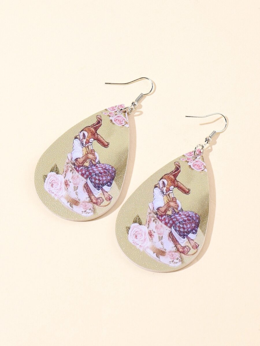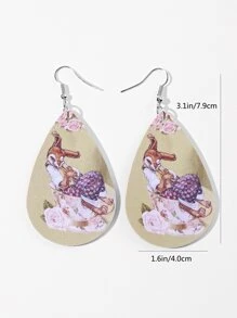 1 paio simpatico cartone animato coniglio & motivo floreale Orecchini pendenti per Donna per Pasqua Decorazioni