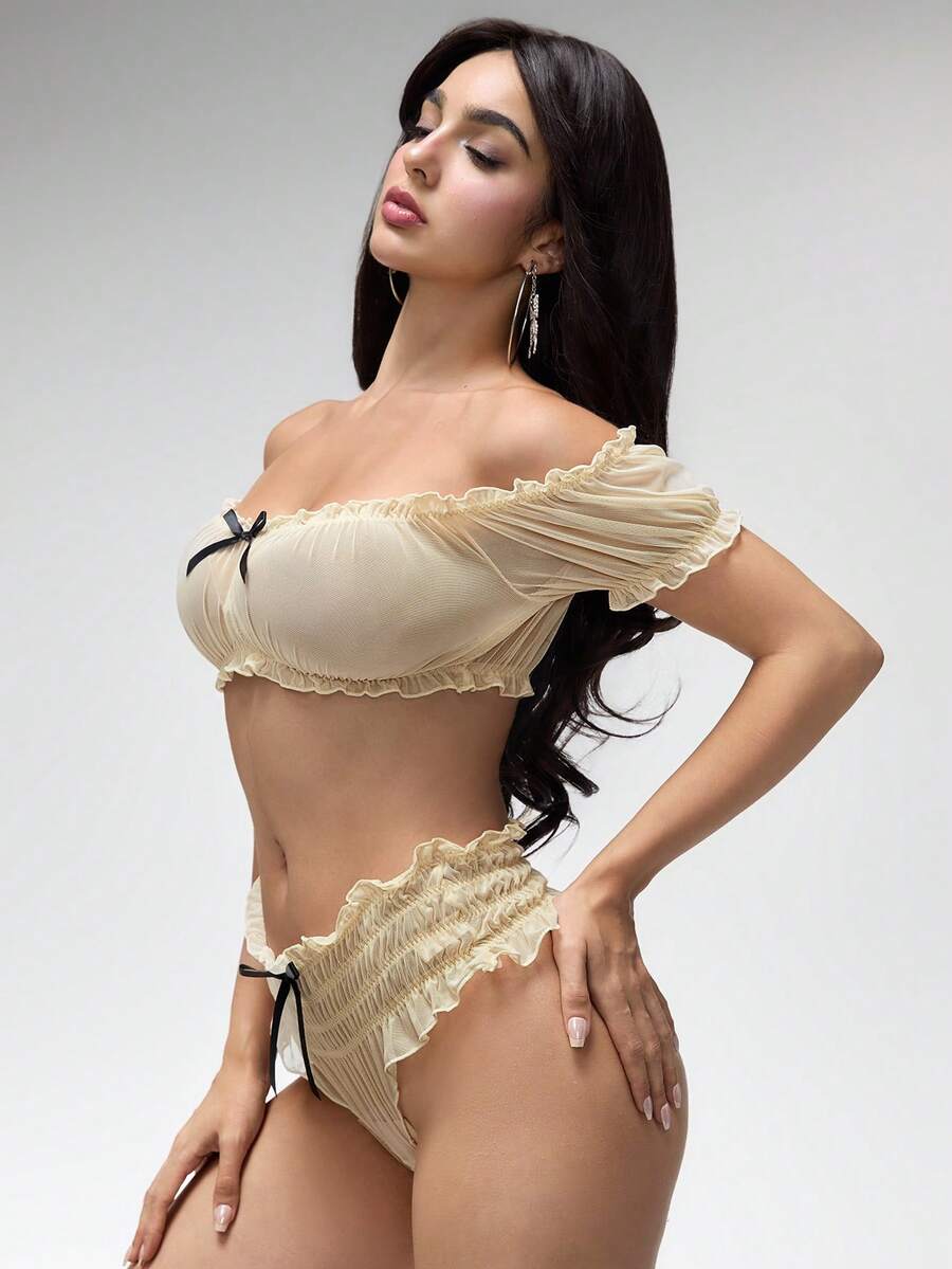 Set di lingerie composto da top con rouches in rete e perizoma, in stile gotico scuro