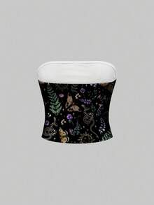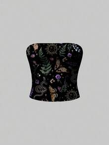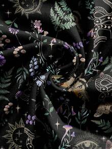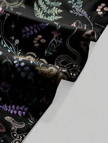 Goth Top da donna oversize con motivo misterioso e sexy di falene, pipistrelli e foglie, con collo alto