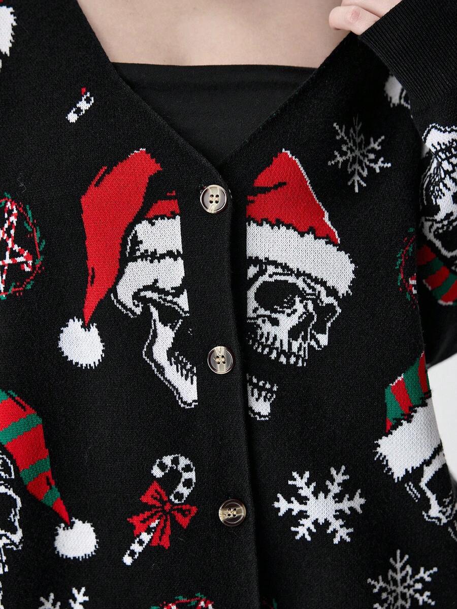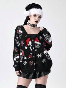 Goth Cardigan con motivo teschio scuro e corona di Natale, alla moda per l'autunno/inverno