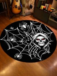 Goth 1 pezzo Tappeto circolare da terra in stile gotico con motivo di ragnatela scura, tappeto da terra a tema Ognissanti, adatto per feste a tema, decorazione