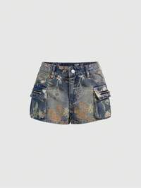 Street Life Pantaloncini in jeans a vita ultra bassa morbidi e casual con tasche cargo e fantasia mimetica, stile vintage e streetwear