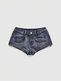 J-Fashion Shorts di jeans mini vintage lavati con vita super bassa, decorati con occhielli e cerniera, in stile sottocultura vintage Y2K streetwear per donne