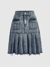 Grunge Punk Gonna di jeans con pince e orlo plissettato, per la scuola