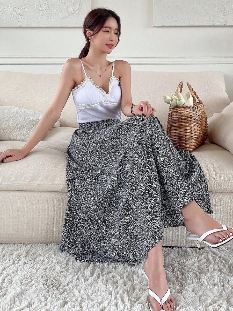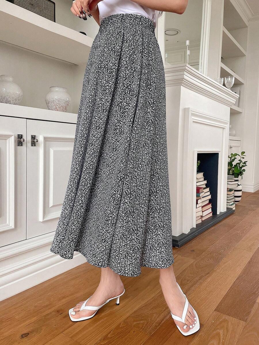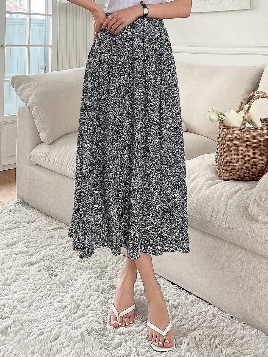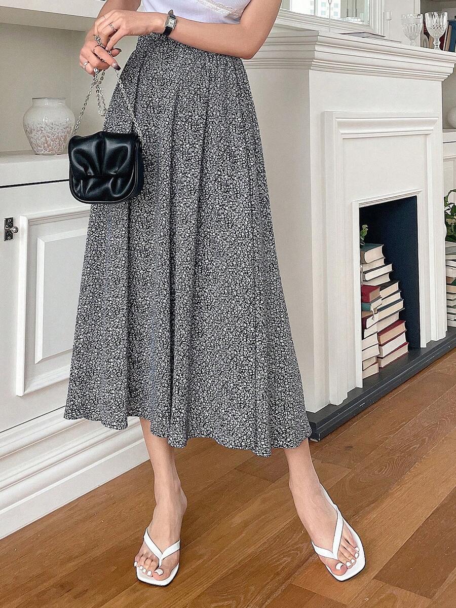 Gonna a campana con stampa floreale ditsy