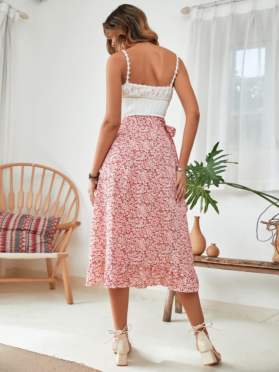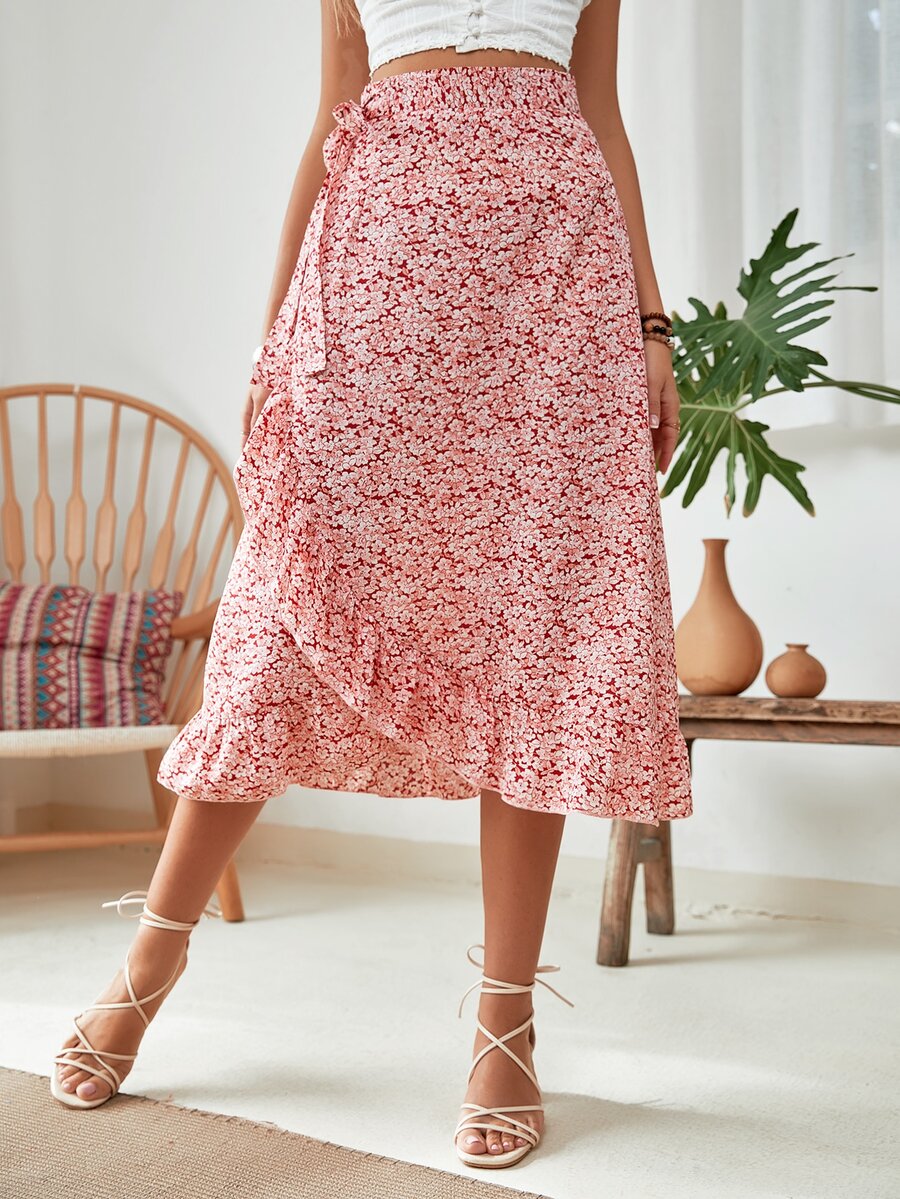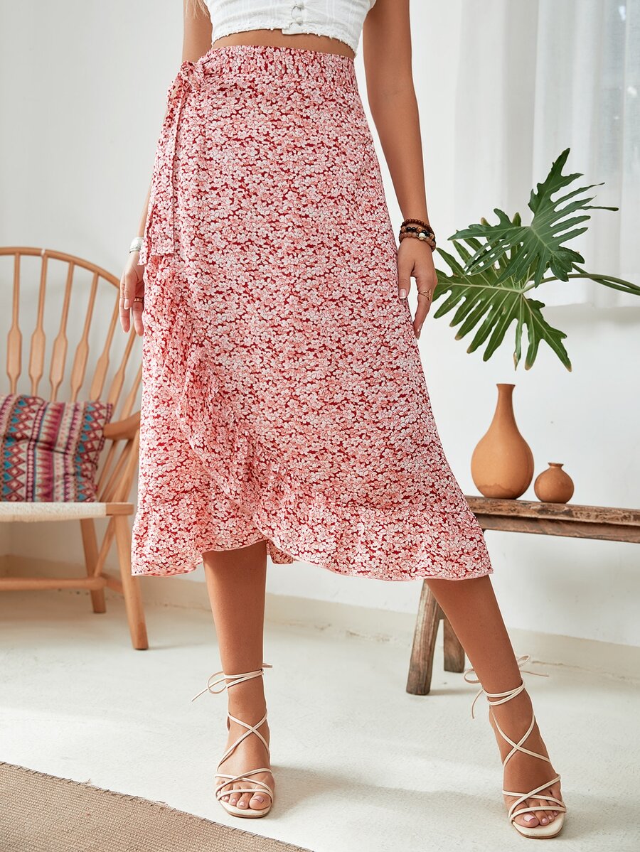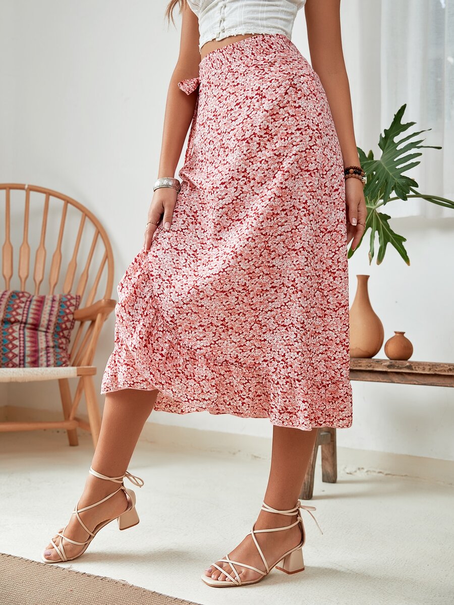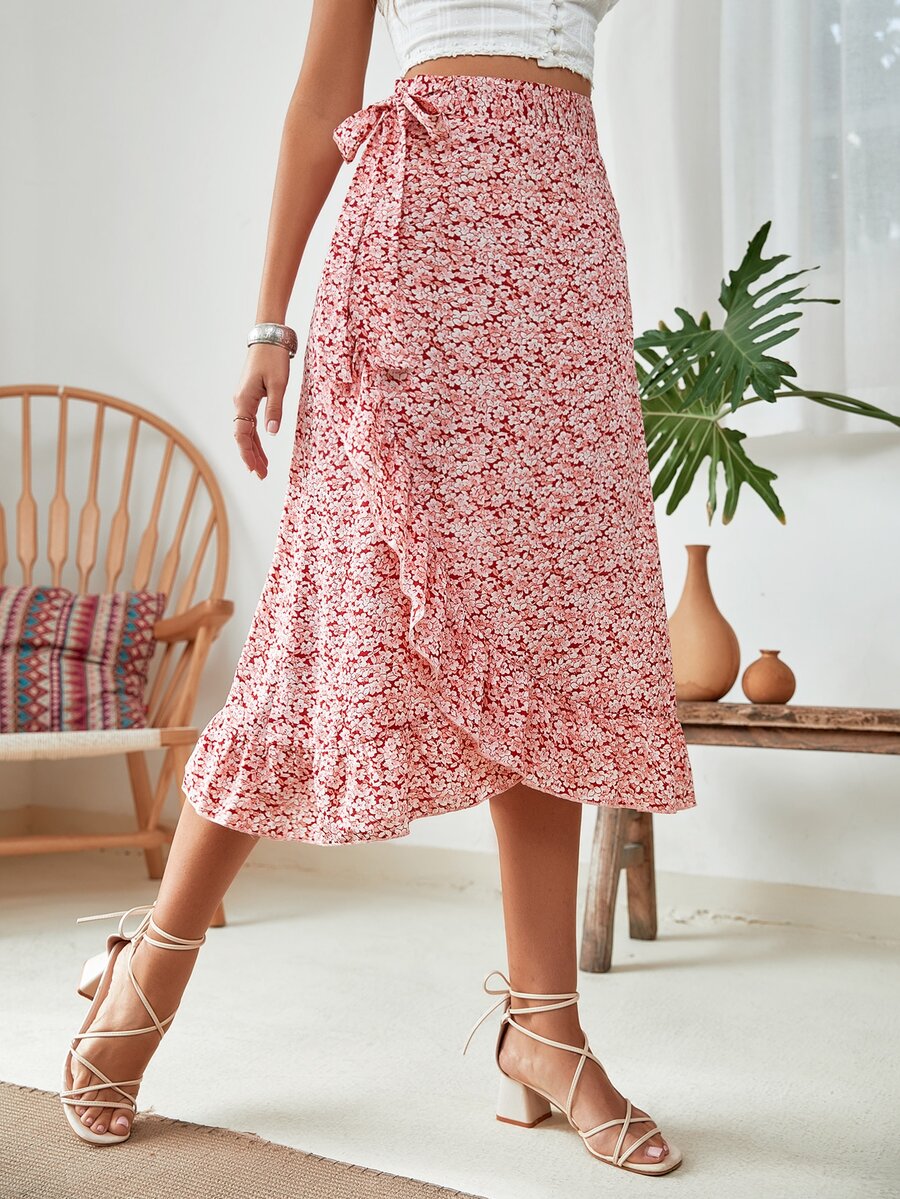 Gonne con stampa fiorellini con volant nodo laterale