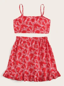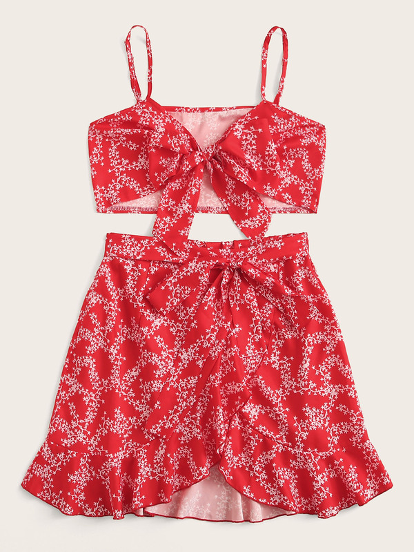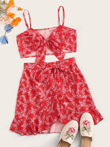 Gonna e Top con bretelle sottile e nodo frontale e stampa floreale ditsy