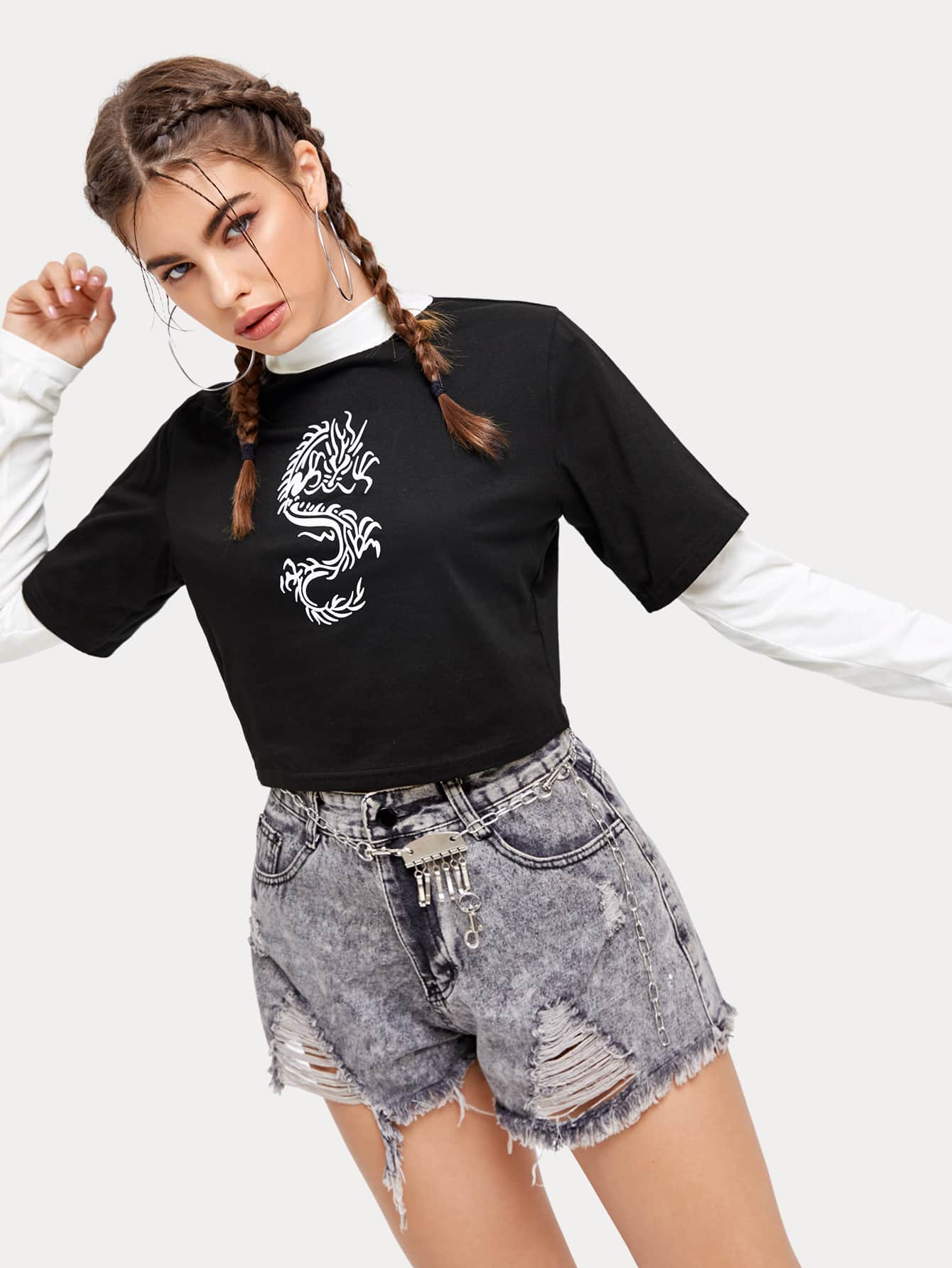 Maglietta 2 in 1 con drago grafico
