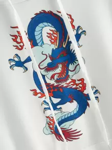 Cappuccio con coulisse e tasca di canguro e stampa drago