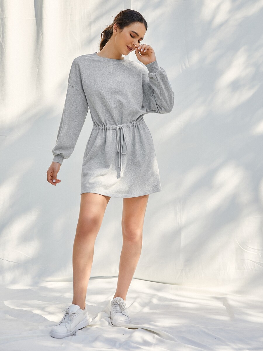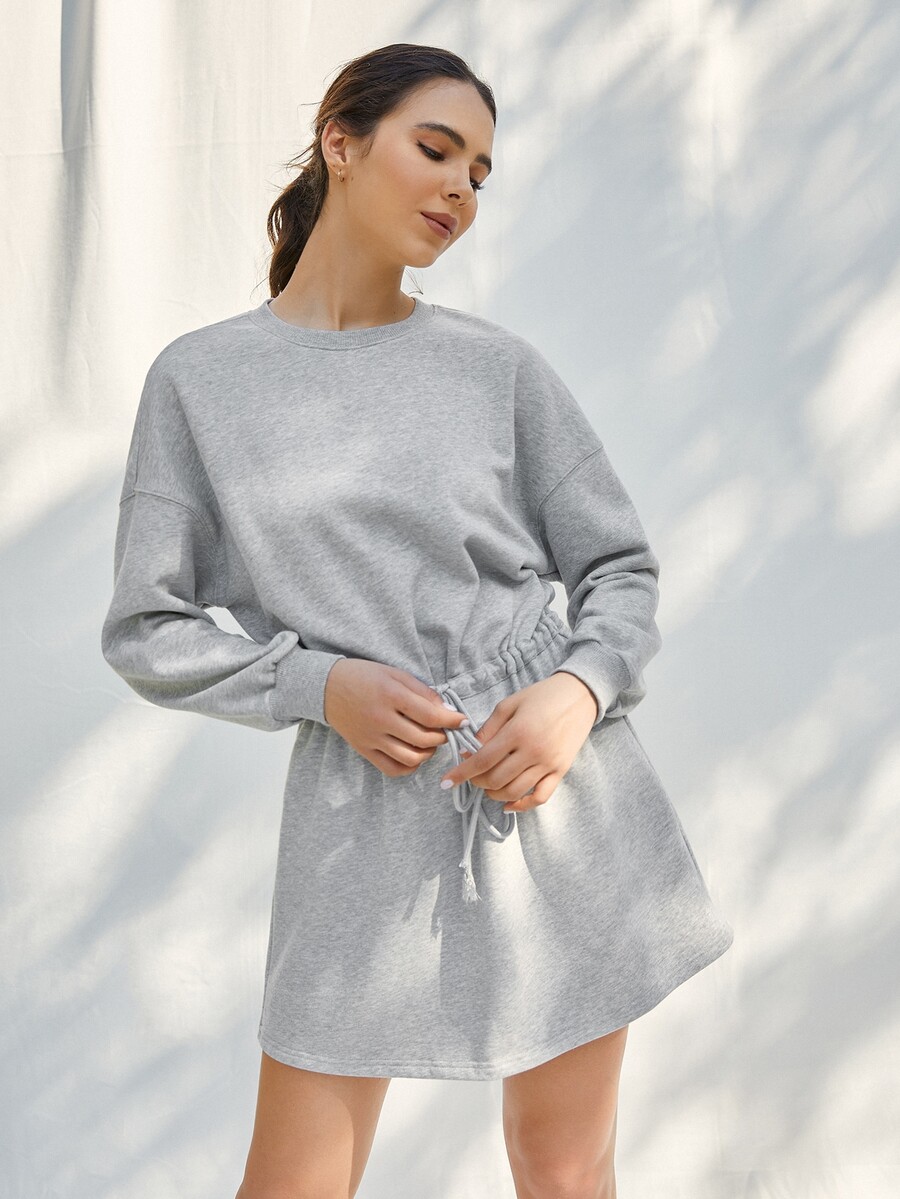 Abito felpa con coulisse e spalle cadenti