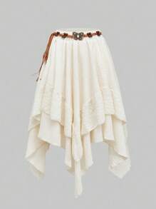 EDITION Gonna midi da donna con stampa patch, stile boho per vacanze estive, di colore albicocca, con cintura e orlo asimmetrico