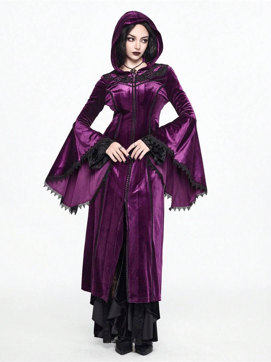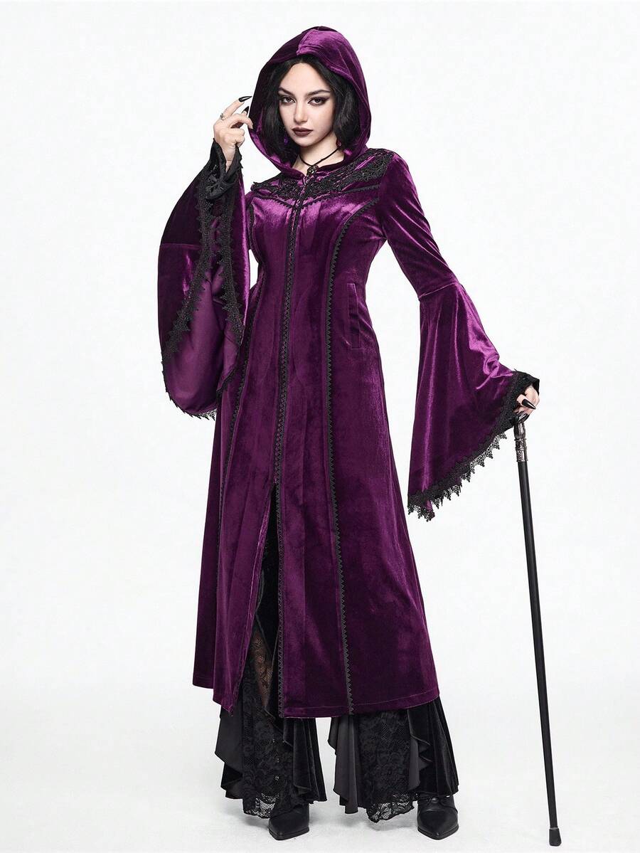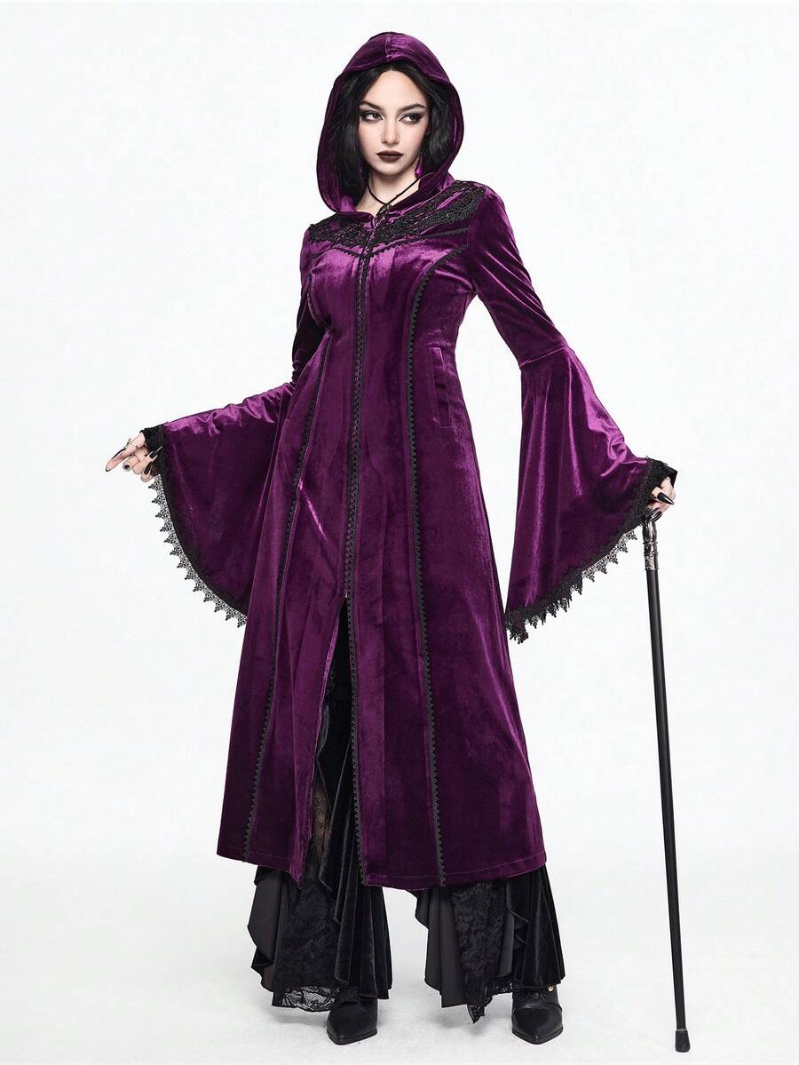 EDITION Stile gotico da palazzo per Ognissanti, cappotto con cappuccio in velluto a maniche allargate, lunghezza lunga