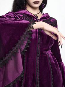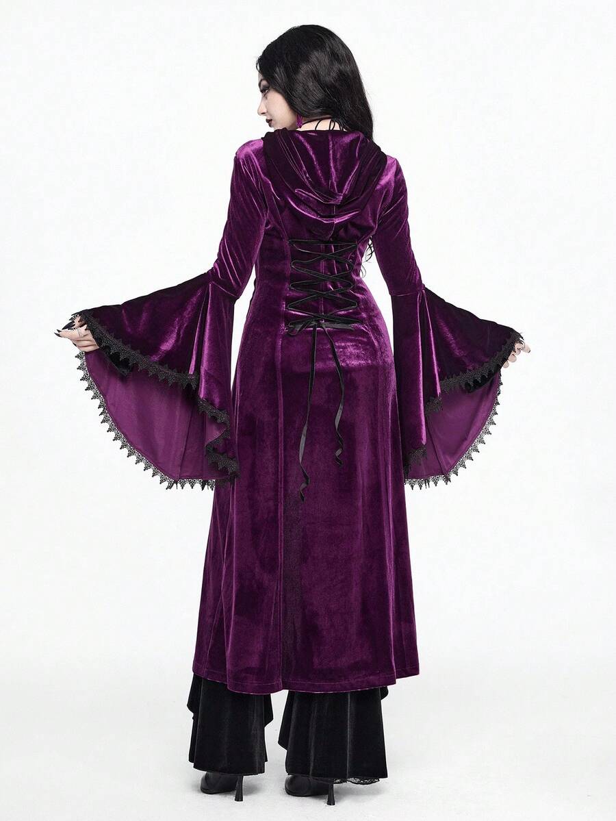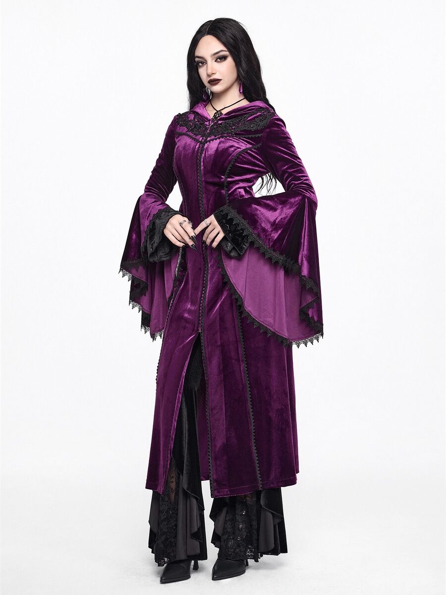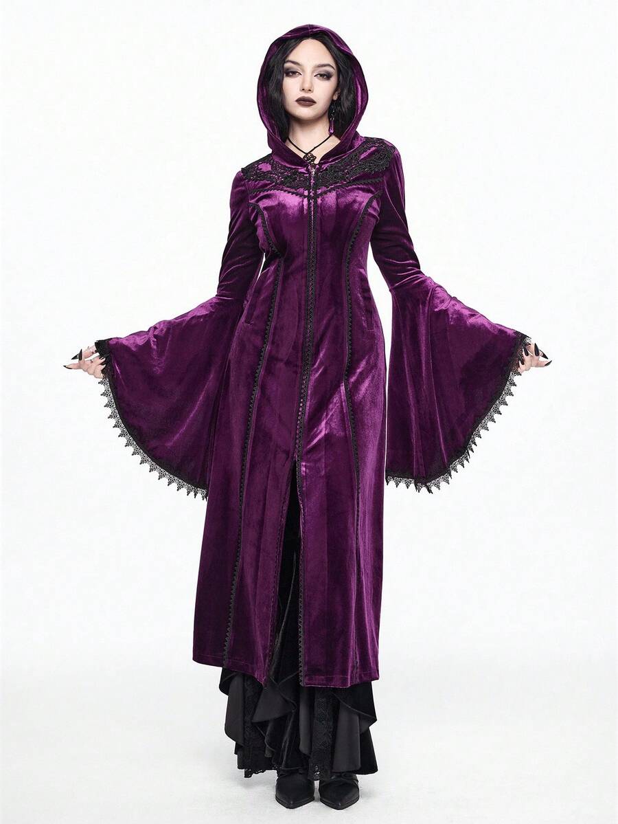 EDITION Stile gotico da palazzo per Ognissanti, cappotto con cappuccio in velluto a maniche allargate, lunghezza lunga