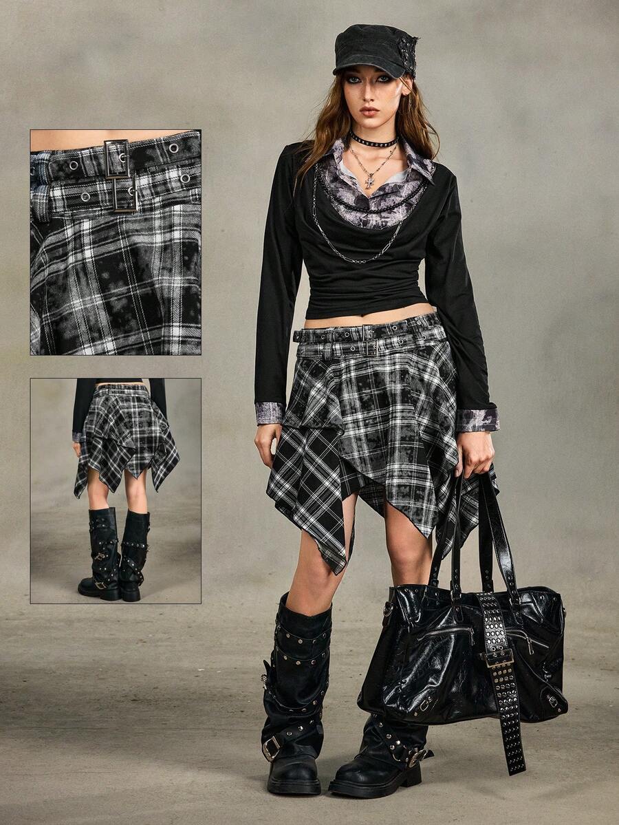 EDITION Gonna asimmetrica a strati con lacci e motivo tartan vintage stile grunge