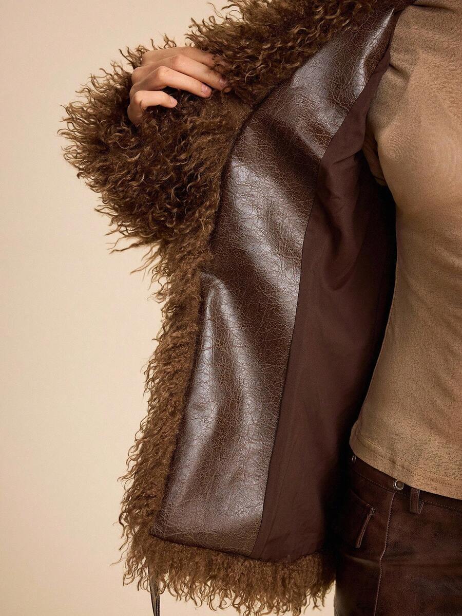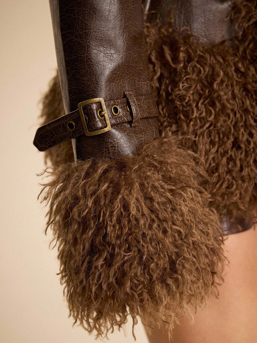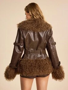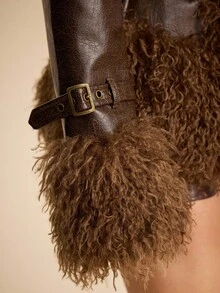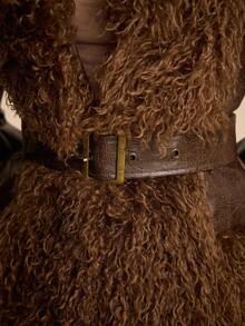 EDITION Giacca in finta pelliccia stile hippie alla moda da donna con chiusura in vita con fibbia metallica e colletto a revers