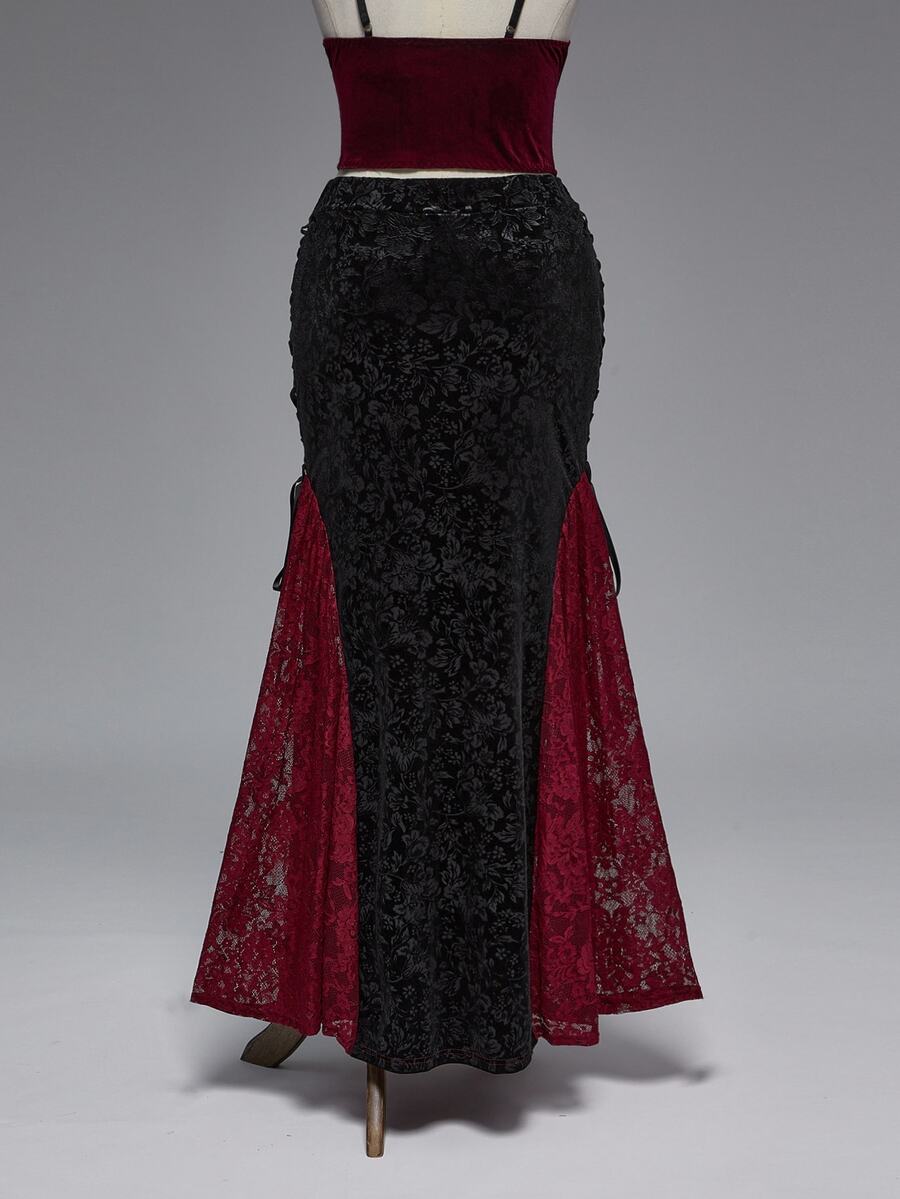 EDITION Gonna a sirena in velluto elegante e gotica, con patchwork in pizzo e motivo damascato in rilievo, taglie comode