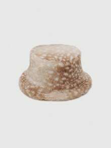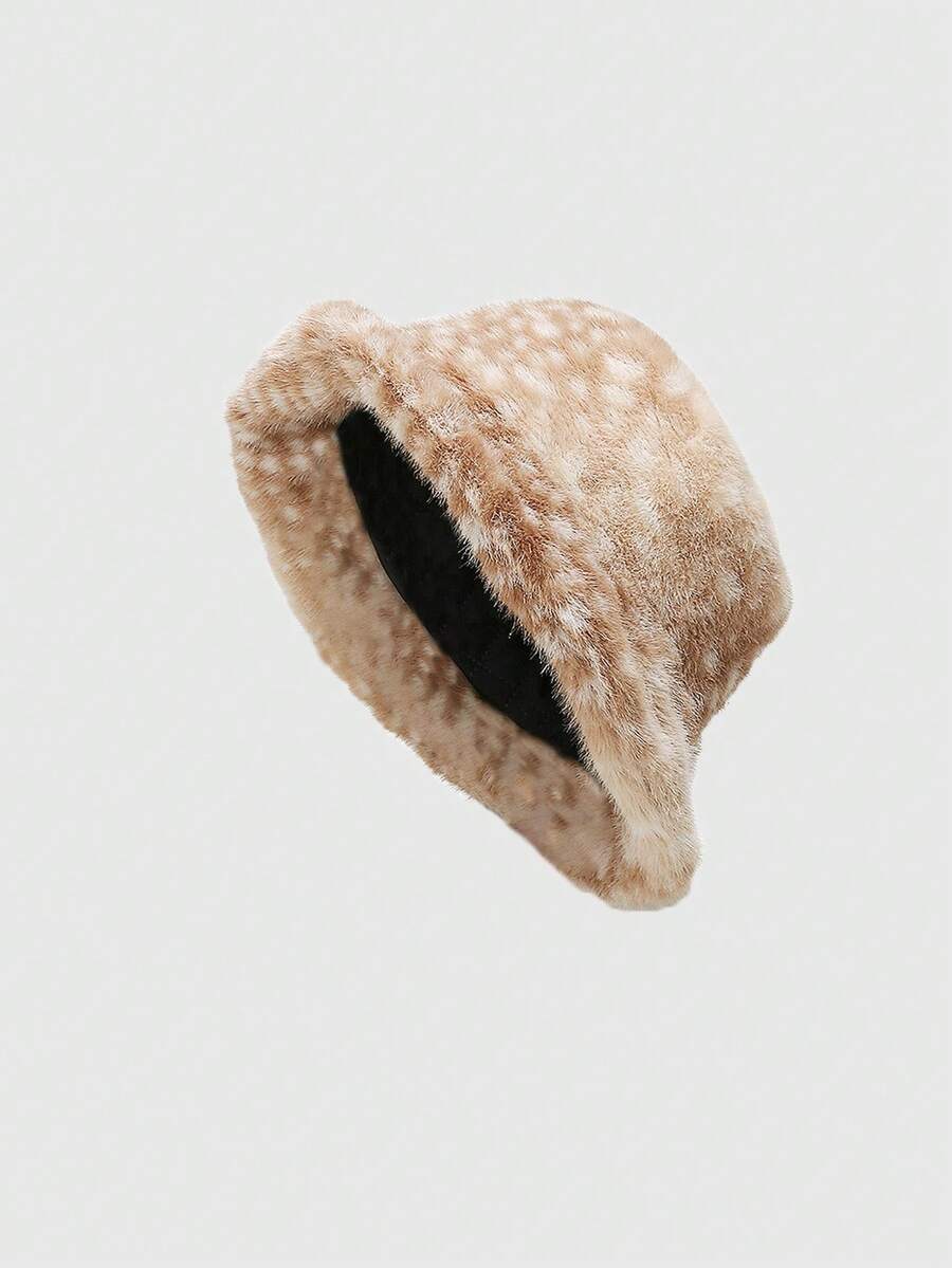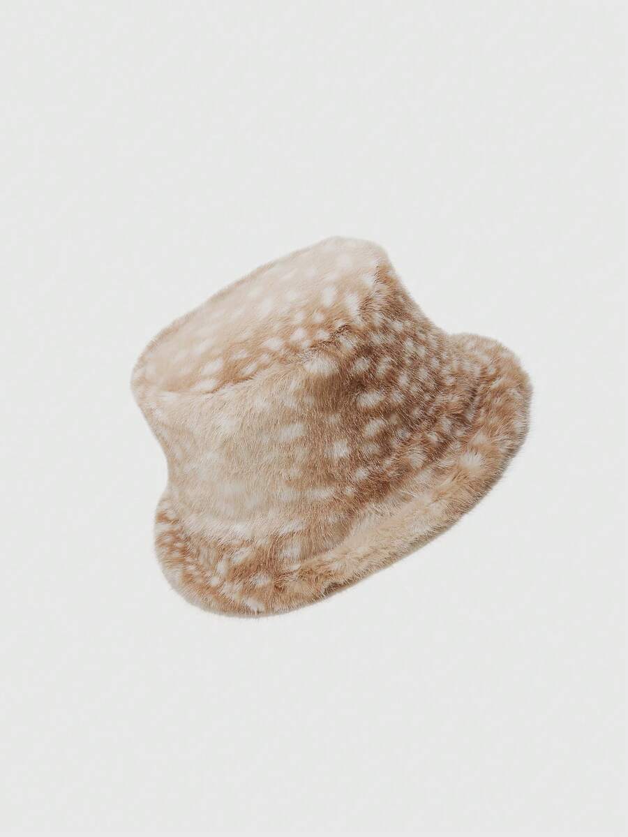 Fairycore 1 Cappello a secchiello in finta pelliccia da donna, cappello invernale morbido e alla moda a pois beige, adatto per l'autunno e l'inverno