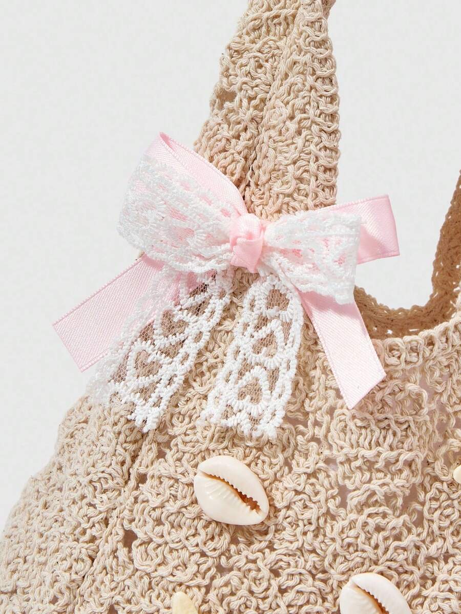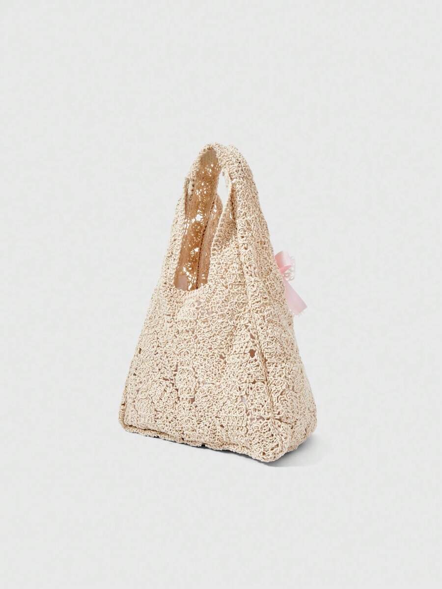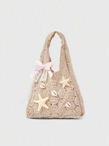 Fairycore 1 pezzo Borsa da spiaggia in stile boho per donna, borsa intrecciata in rete a vuoto, adatta per le vacanze