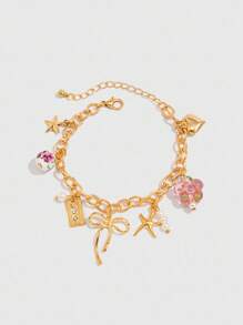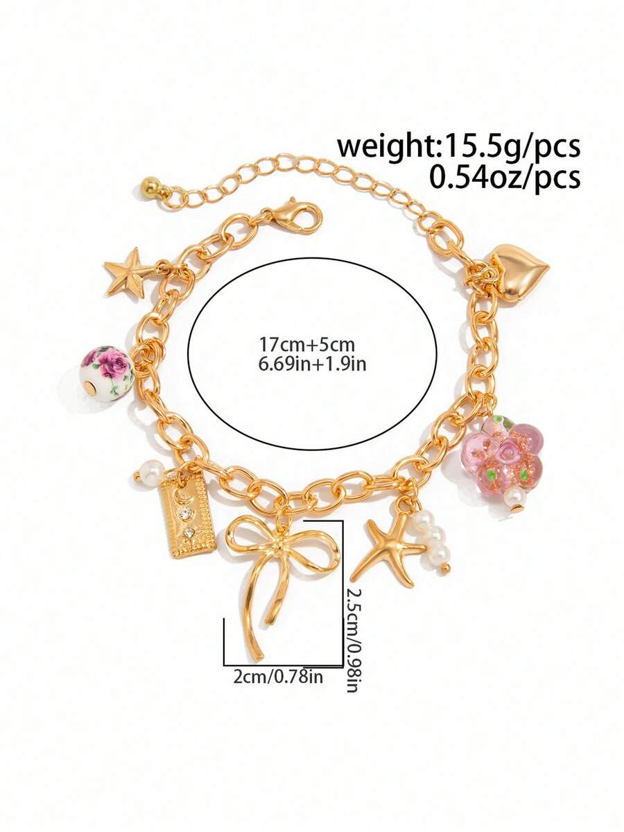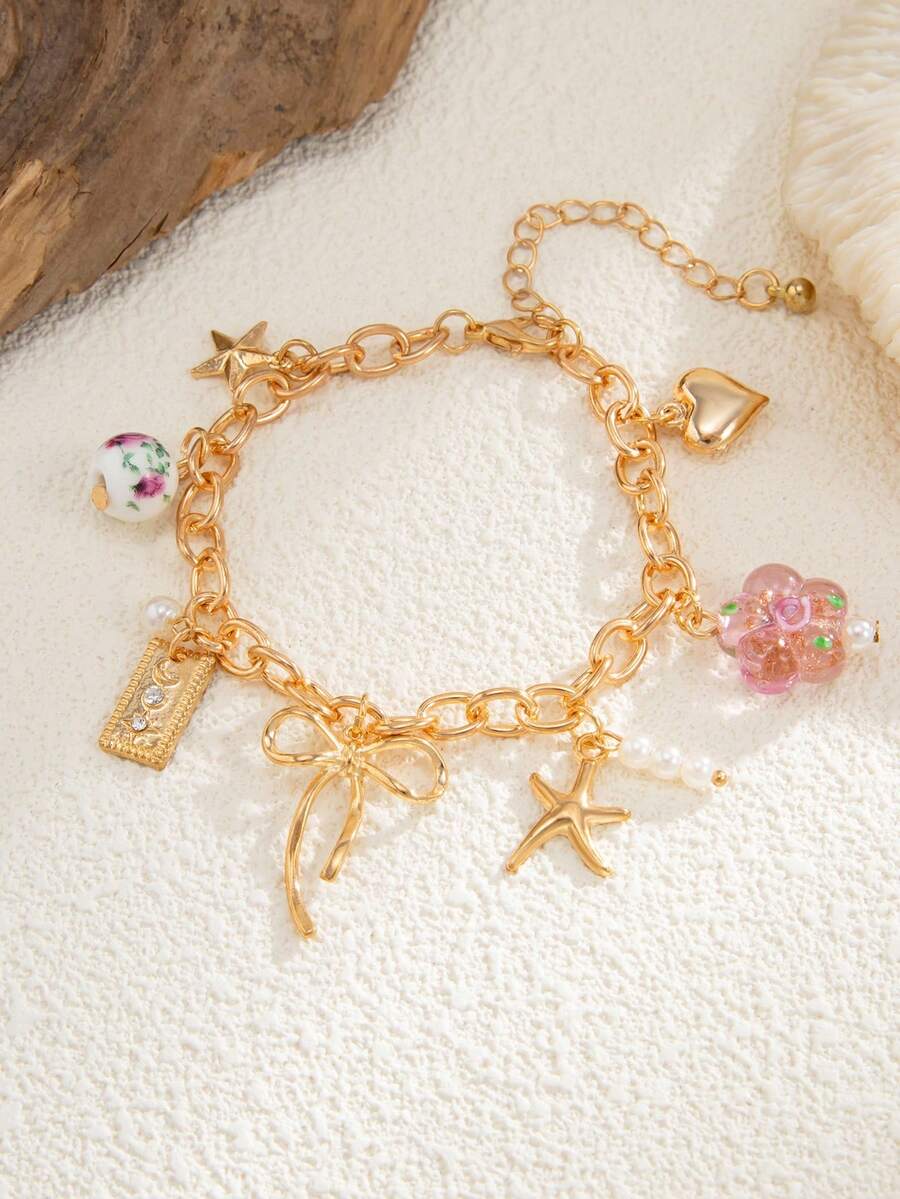 Fairycore 1 pezzo Braccialetto di moda stile oceano minimalista con stella marina/fiori/fiocco/perla/cuore, accessorio per abiti casual da donna, regalo per le vacanze