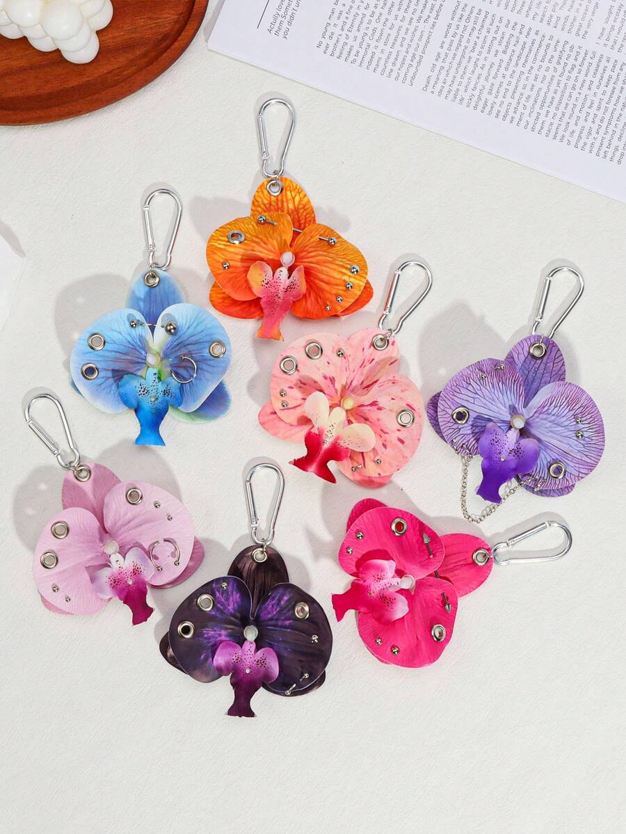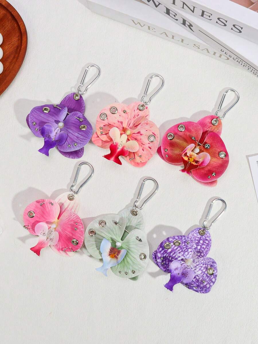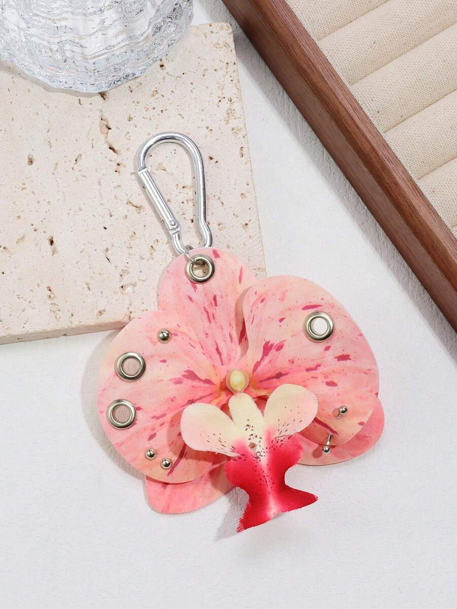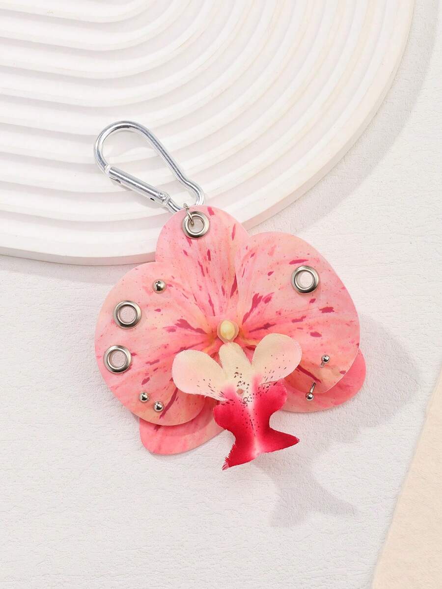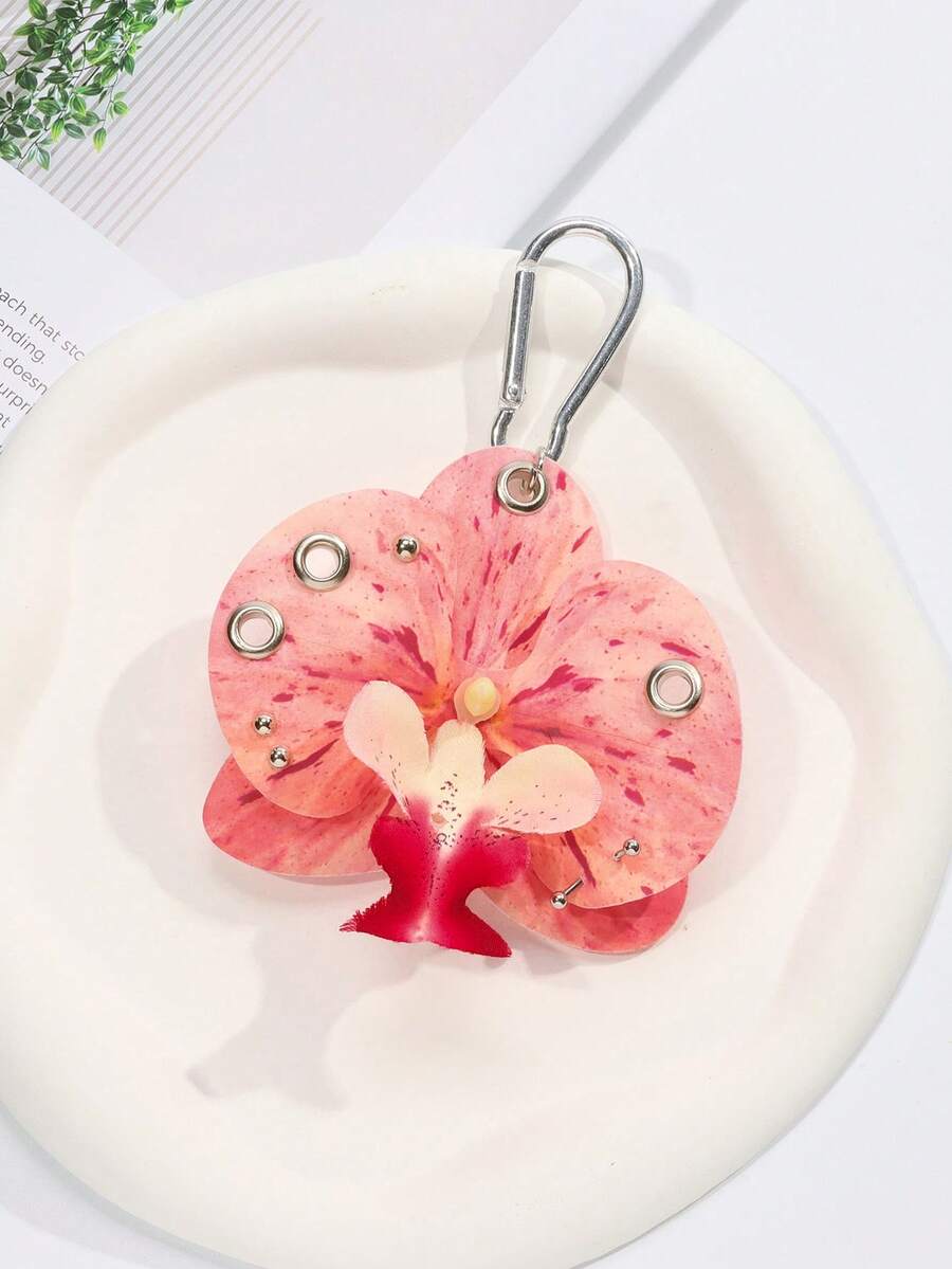 Fairycore 1 pezzo Portachiavi decorativo per piercing a forma di fiore di orchidea con pois rosa, chic e carino, adatto come decorazione per feste di matrimonio, compleanni e vacanze in spiaggia, stile primavera/estate