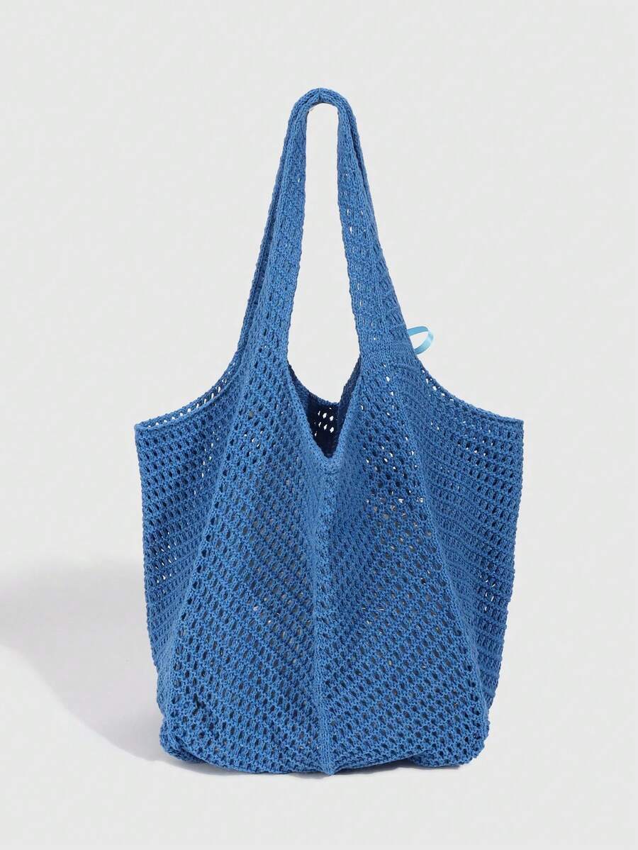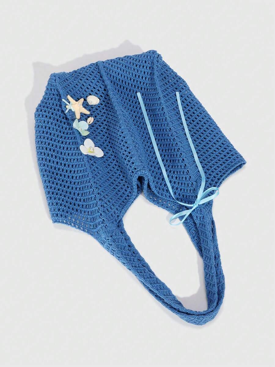 Fairycore 1 pezzo Borsa a spalla intrecciata da donna in stile resort oceanico tropicale, con decorazioni a conchiglia, stella marina e fiore, con grande capacità