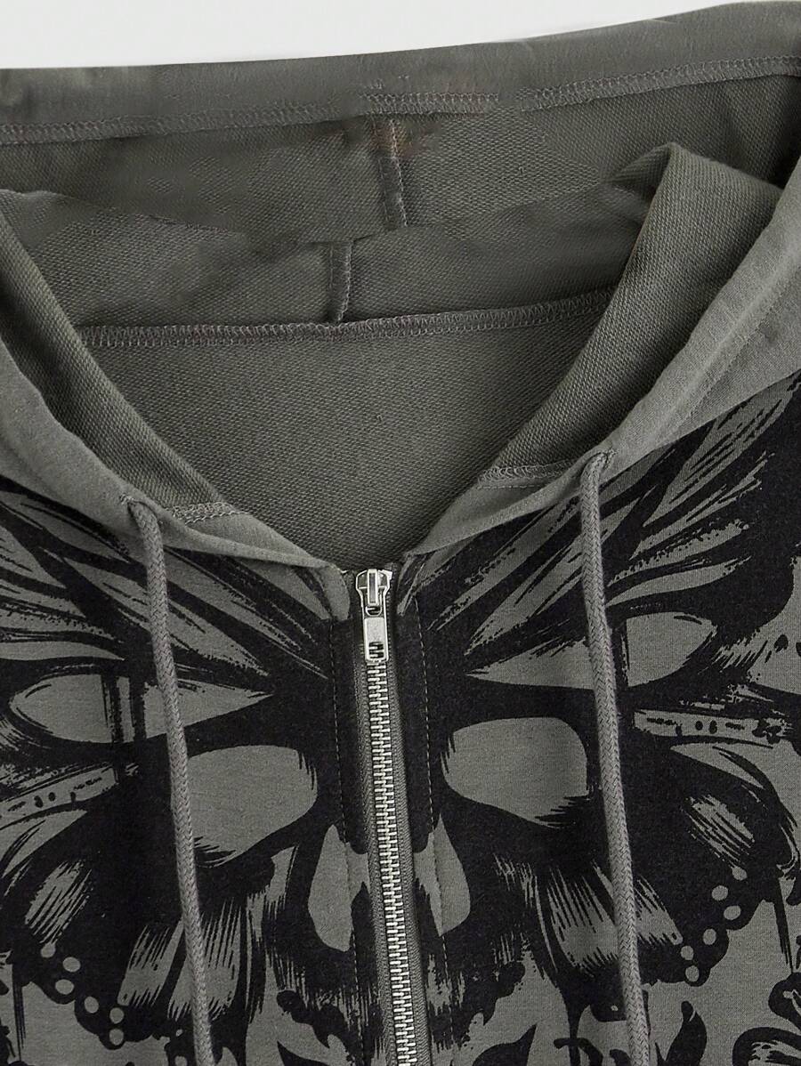 Fairycore Felpa con cappuccio con cerniera, spalla cadente e coulisse, con stampa a farfalla, adatta per la scuola