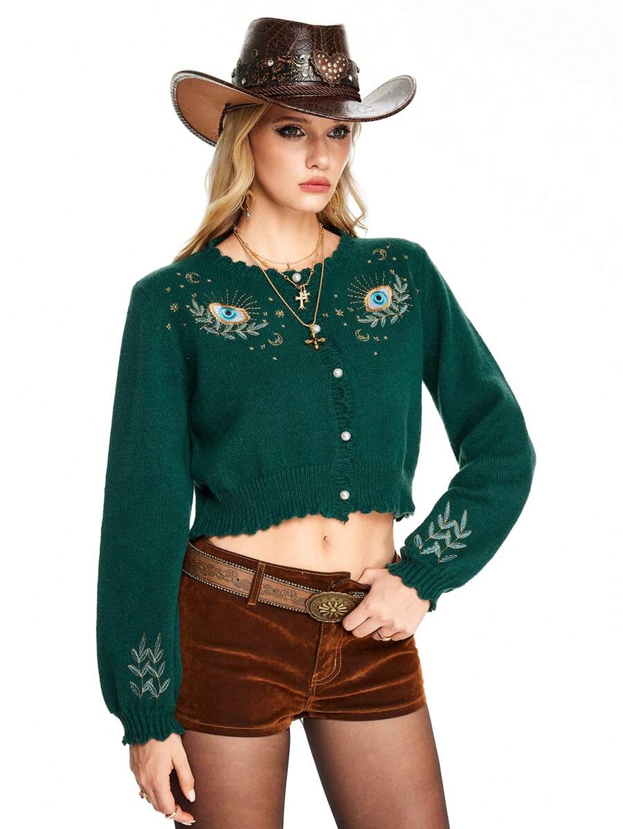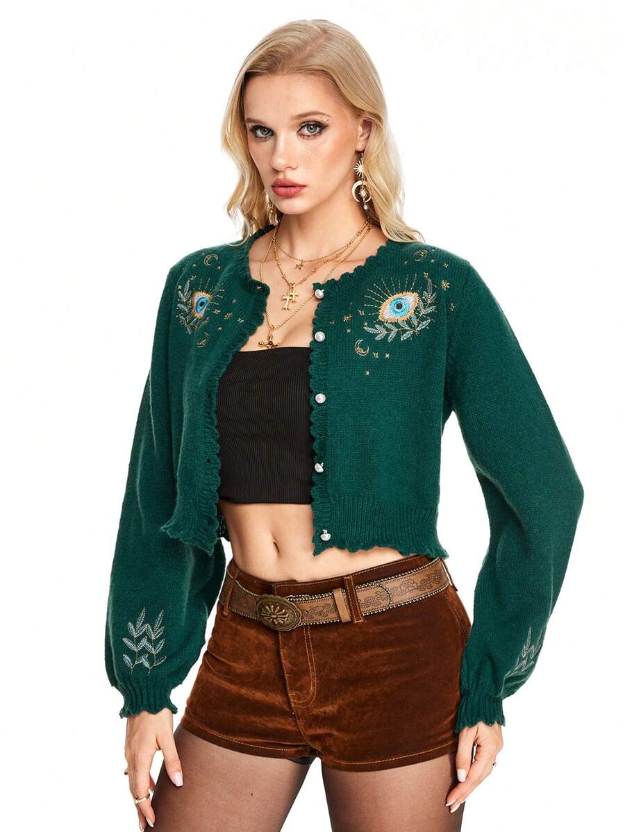 Fairycore Cardigan corto con ricamo ad occhio demoniaco