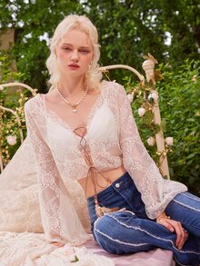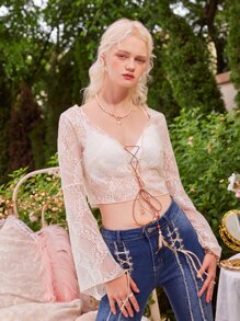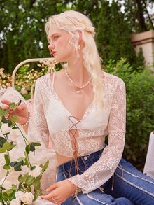 Top in pizzo floreale senza reggiseno