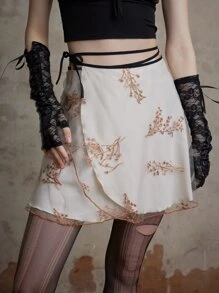 Fairycore Gonne con stampa floreale bordo a contrasto fiocco in vita