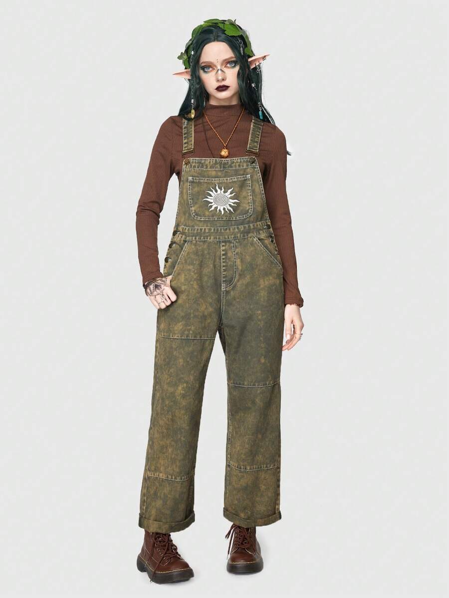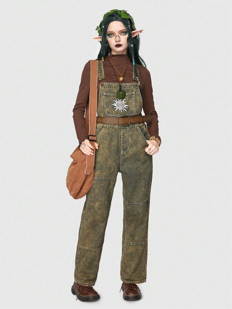 Fairycore Salopette in denim con stampa floreale senza maglietta