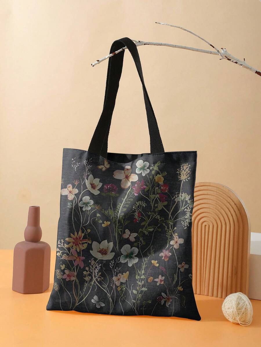 Fairycore Borsa a tracolla riutilizzabile in tela con stampa floreale, ideale per lo shopping