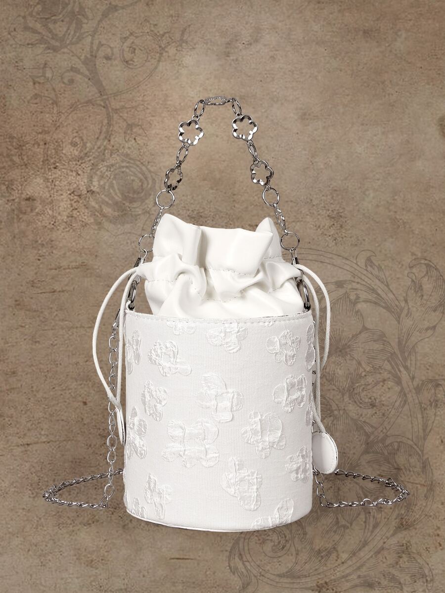 Fairycore Borsa a secchiello mini floreale jacquard con design coulisse con catena