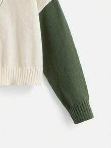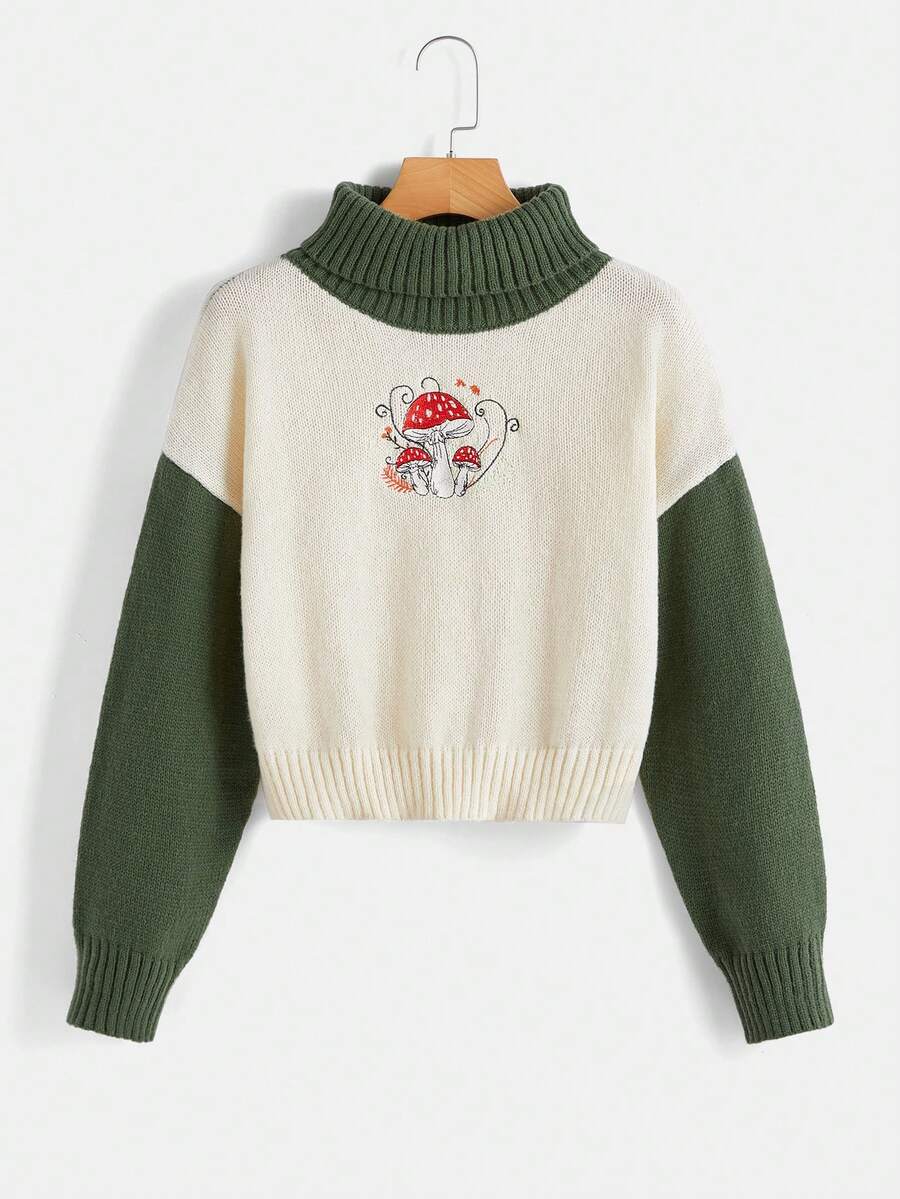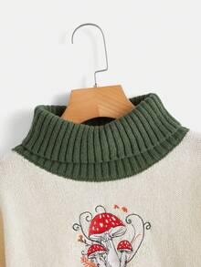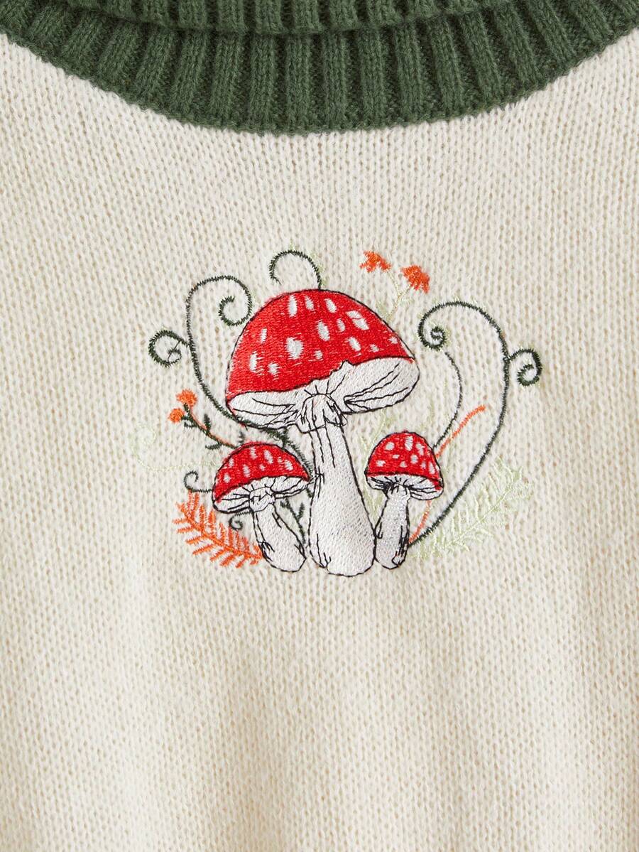 Fairycore Maglione con ricamo funghi color block spalle cadenti