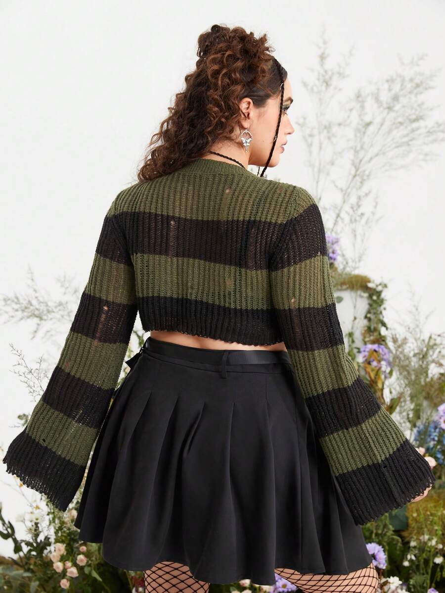 Fairycore Taglie Forti Maglione corto colorblock maniche svasata