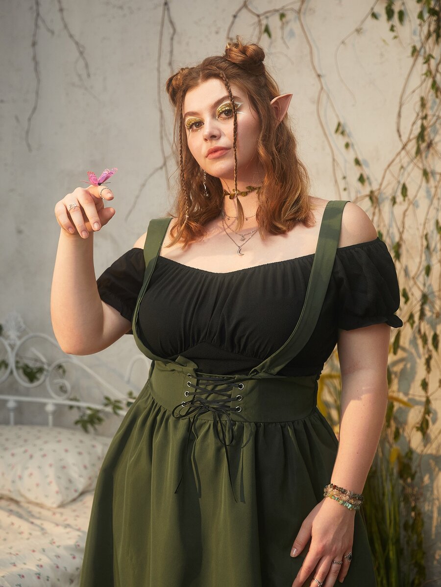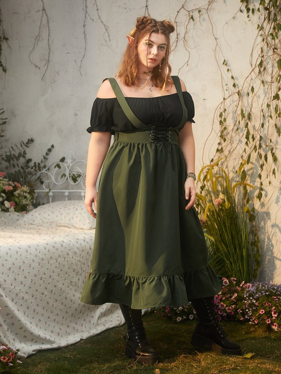 Fairycore Taglie Forti Gonna salopette con lacci frontale con volant senza top