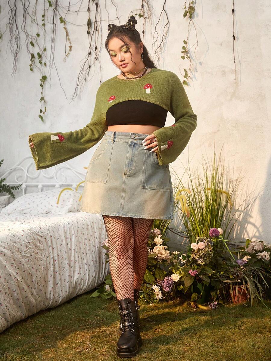 Fairycore Taglie Forti Maglione motivo fungo super corto senza top a fascia