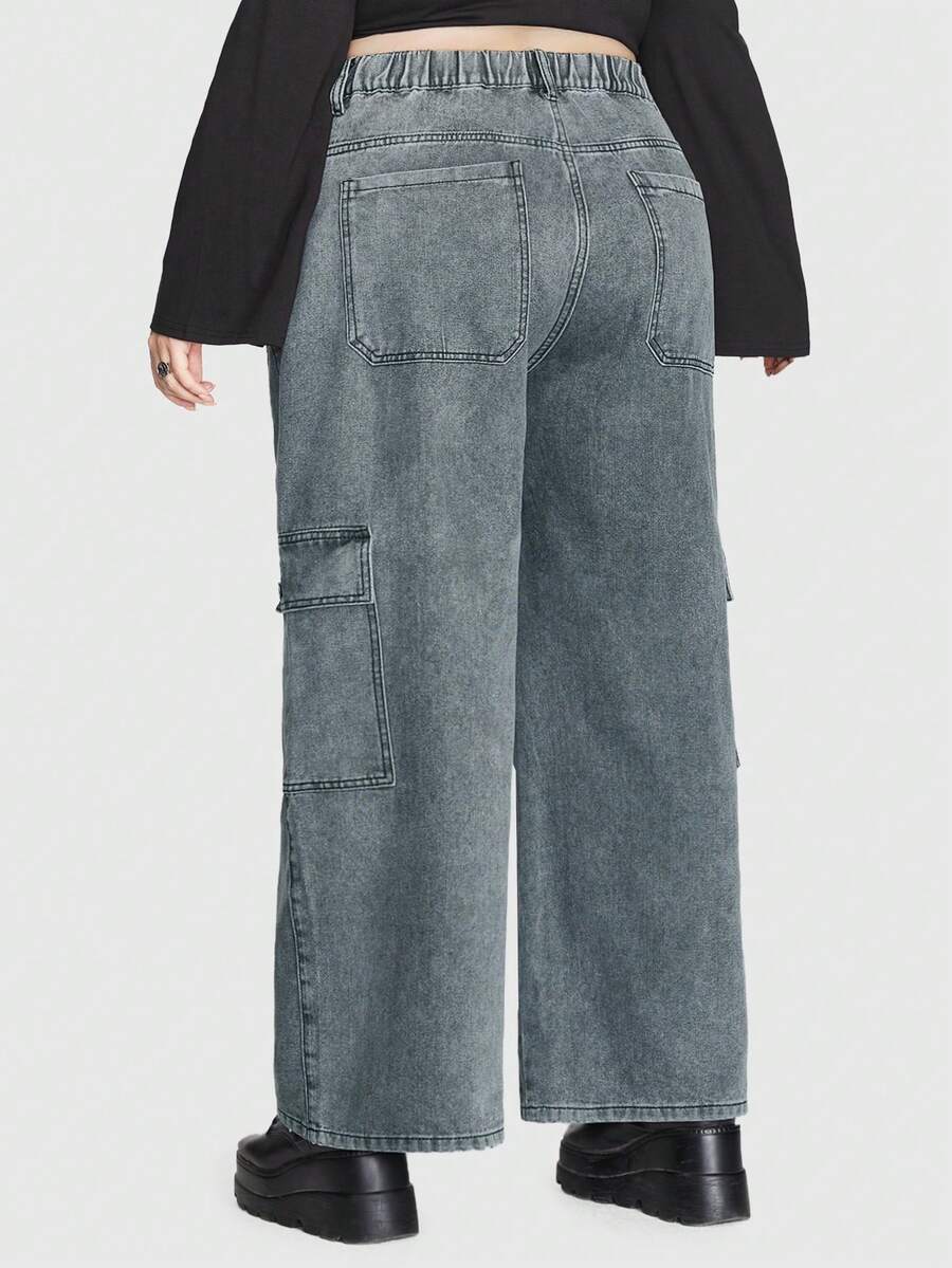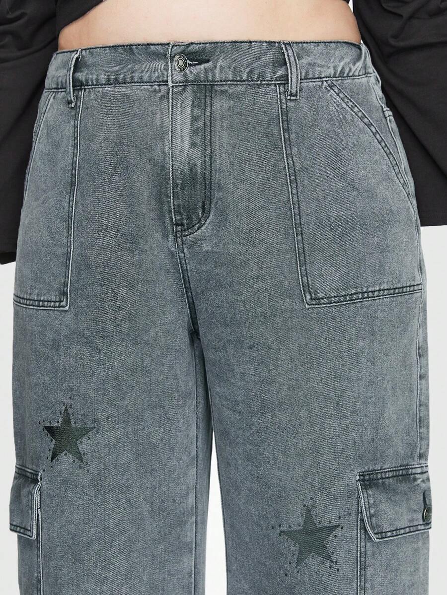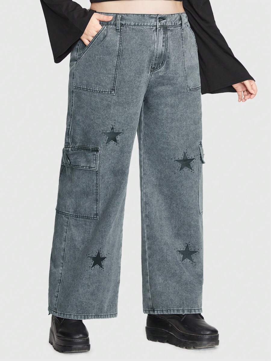 Fairycore Taglie Forti Jeans con stampa stella tasca con patta gamba ampia