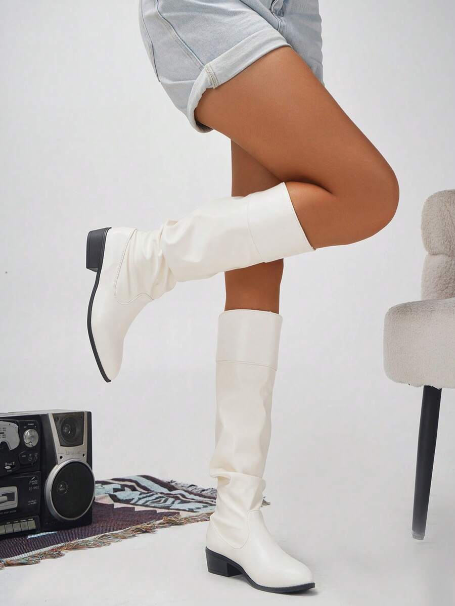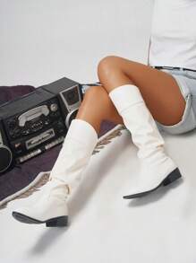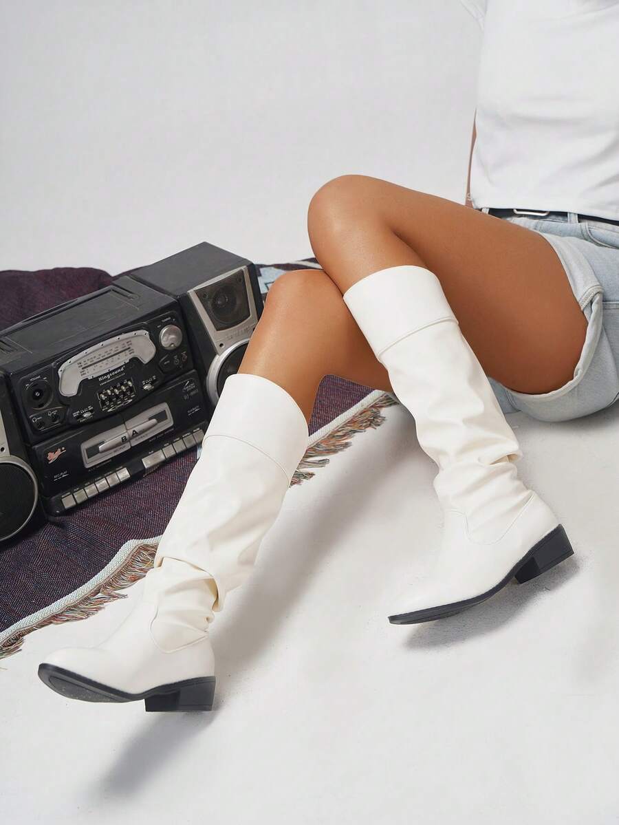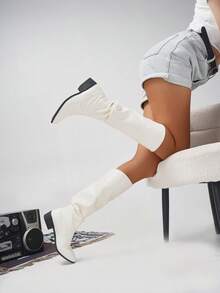 Fairycore Stivali al ginocchio a punta da donna bianco