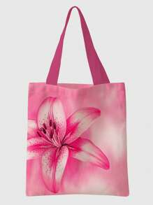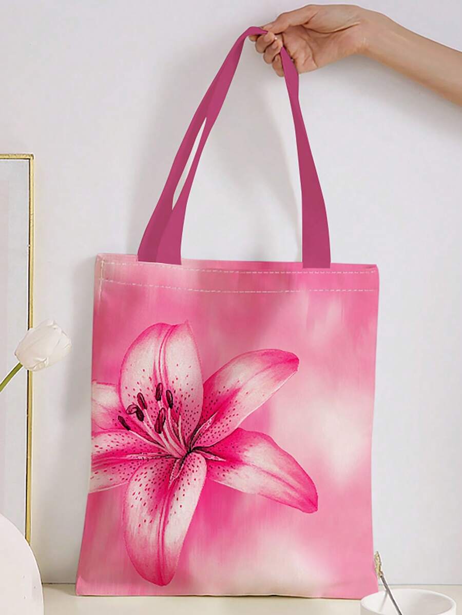 Fairycore Borsa a tracolla riutilizzabile in tela con stampa floreale a giglio, borsa a spalla di moda, borsa multiuso