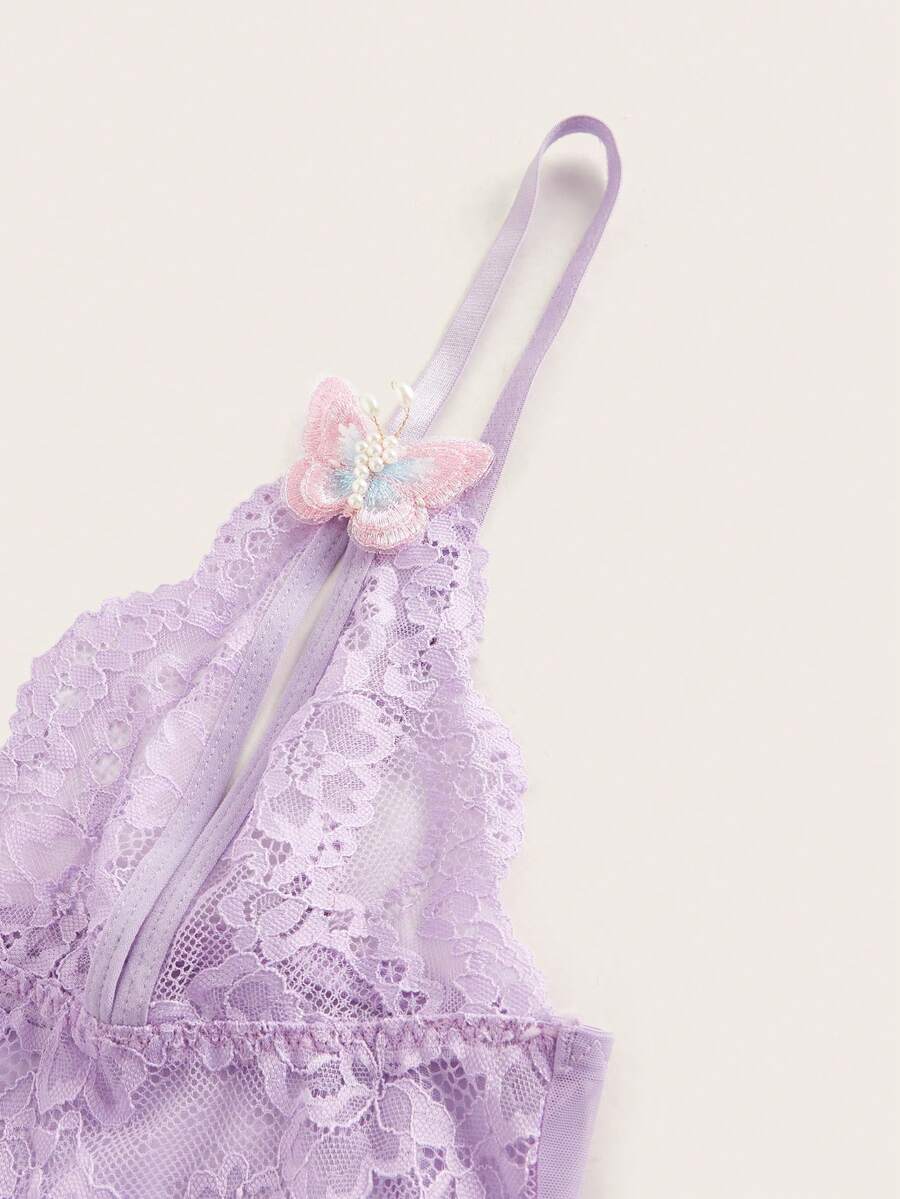 Fairycore Set di biancheria intima e vestaglie sexy in pizzo e rete traforata con motivo a farfalla per signore
