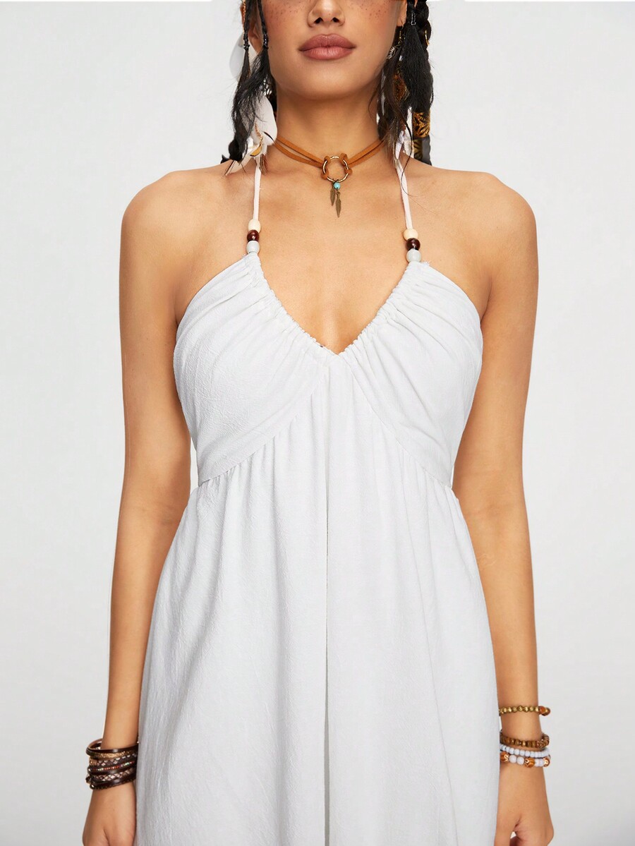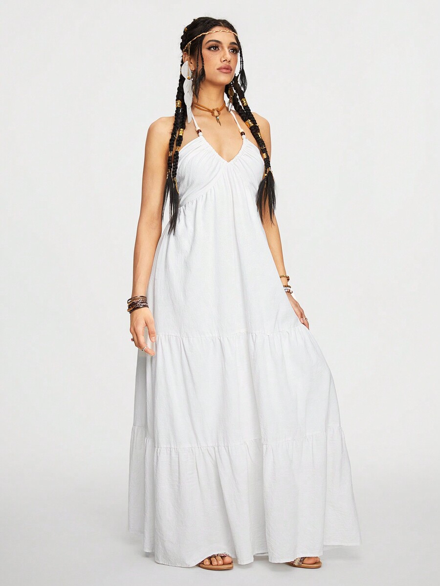 Fairycore Sexy Vintage Vacanza Al Mare Vestito lungo a linea A con scollo alla schiena Halter e fiocco per le donne