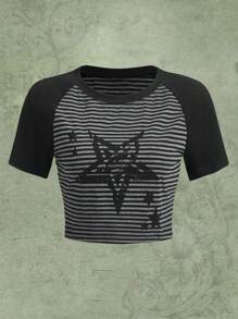 Fairycore Maglietta righe con stampa stella manica raglan