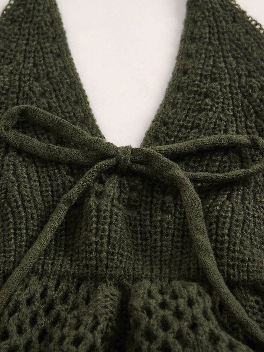 Fairycore Top In Maglia Con Collo Halter E Scollo Profondo, Solida Con Allacciatura Al Collo Con Lacci E Schiena Scoperta