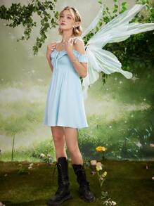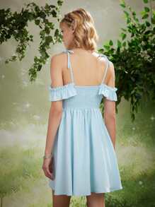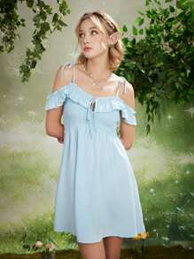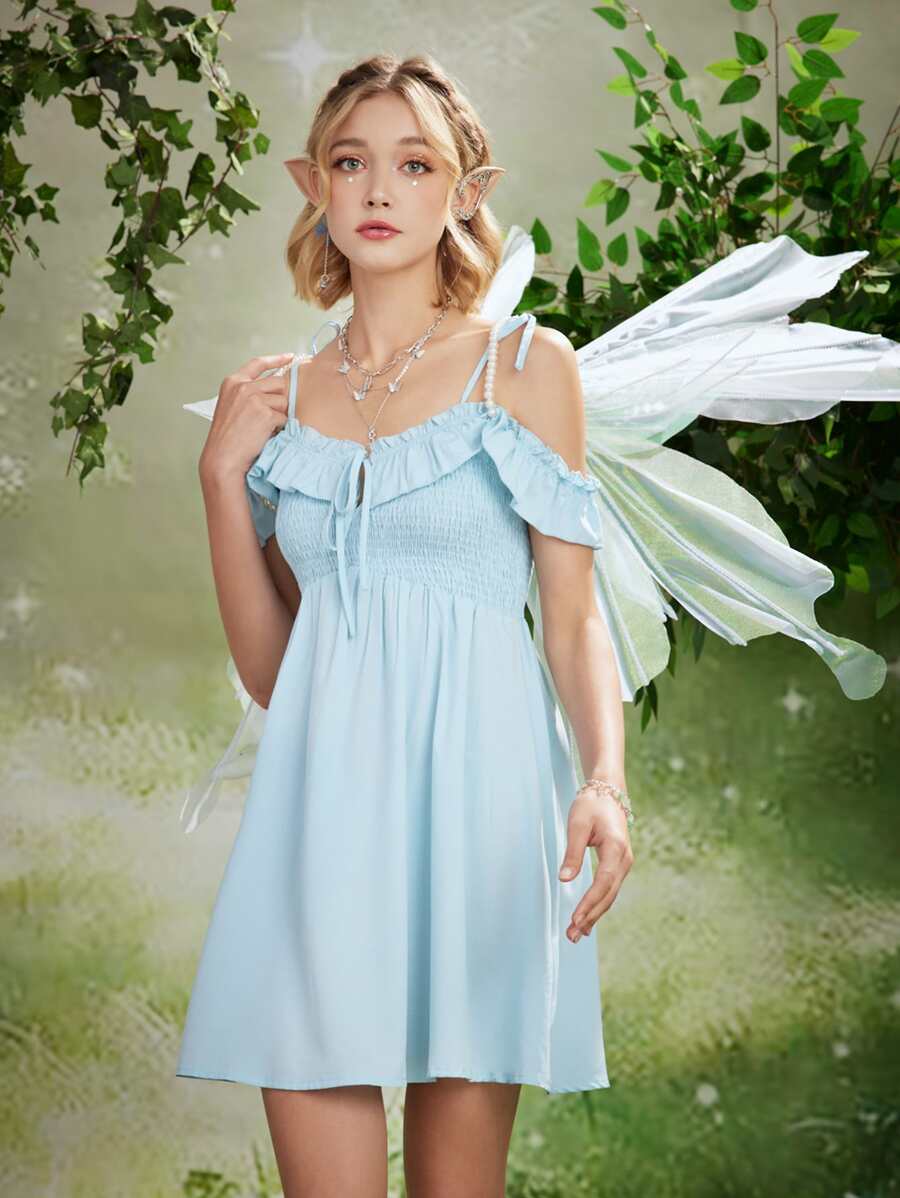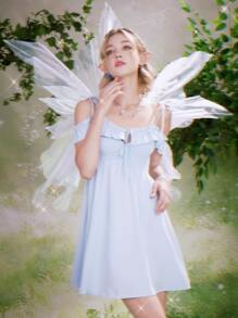 Fairycore Abito con spalle annodate arricciato con bordo a volant