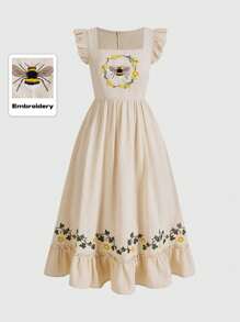 Fairycore Abito Svolazzante Con Maniche A Farfalla Ricamate Con Stile Country E Un Tocco Retrò Cottagecore Per Donne