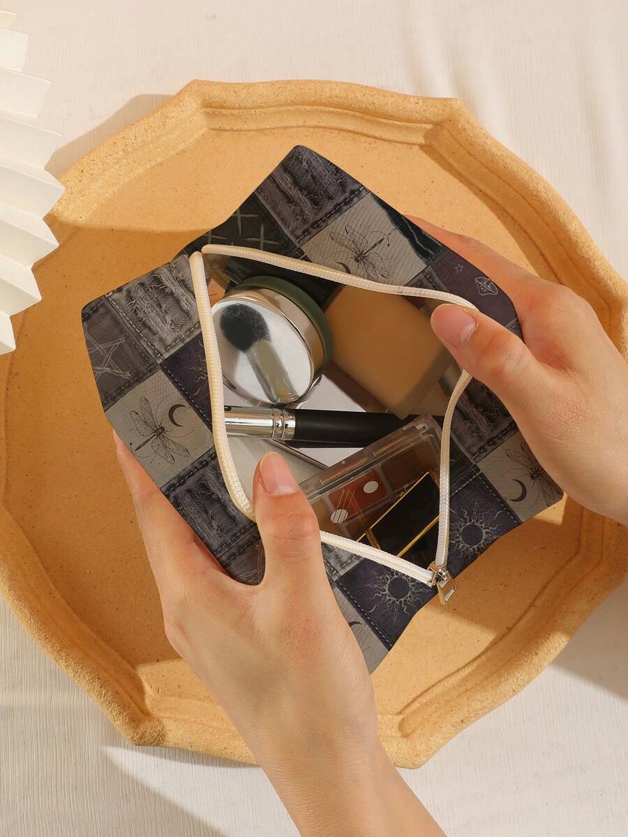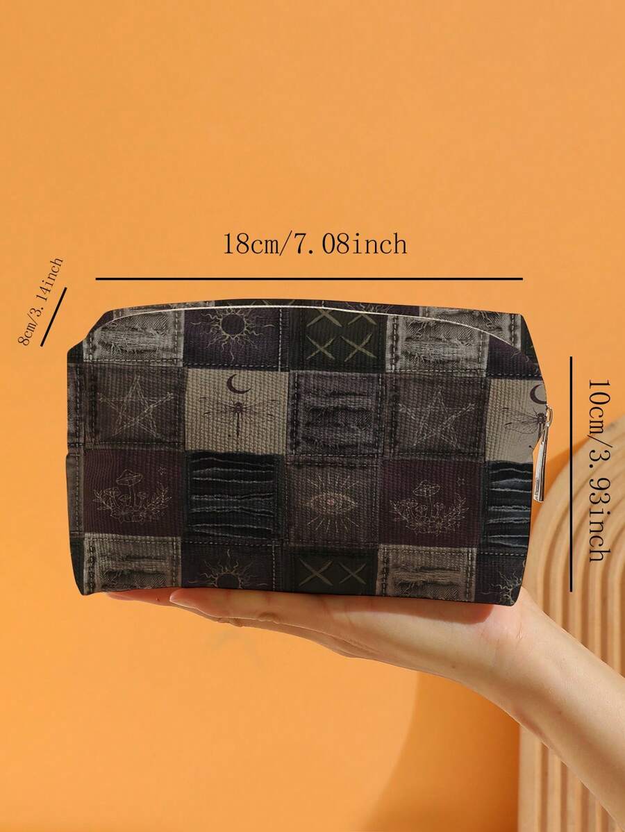 Fairycore Borsa cosmetica ottagonale in velluto con motivo vintage a toppe